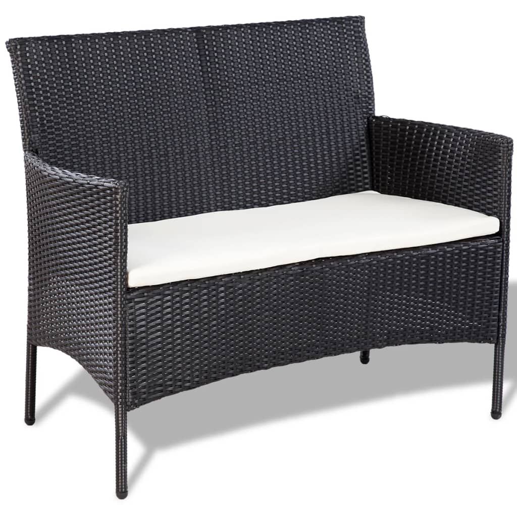 4-cz. zestaw wypoczynkowy do ogrodu, poduszki, rattan PE czarny