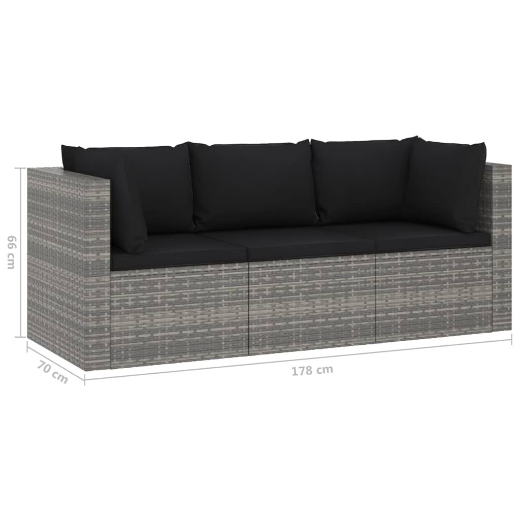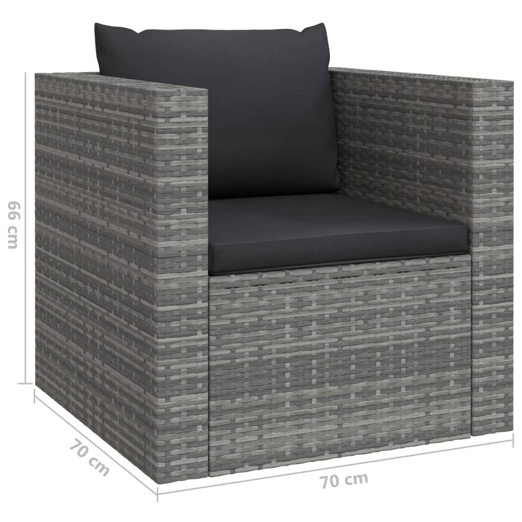 Opis produktu: Ten ogrodowy zestaw wypoczynkowy to idealny wybór, aby się zrelaksować i cieszyć pogodą, zdrzemnąć albo porozmawiać z rodziną lub przyjaciółmi. Komplet wykonano z odpornego na czynniki pogodowe i wodoodpornego rattanu PE, dzięki czemu jest łatwy do czyszczenia, wytrzymały i odpowiedni do codziennego użytku. Malowane proszkowo, stalowe ramy sprawiają, że jest on bardzo mocny i trwały. Dzięki lekkiej konstrukcji można go łatwo przestawiać. Zestaw jest dostarczany wraz z bardzo wygodnymi, grubo wypełnionymi poduszkami na siedziska i oparcia, oferując najwyższy komfort siedzenia. Uwaga: aby przedłużyć żywotność mebli ogrodowych, zalecamy zabezpieczenie ich wodoodpornym pokrowcem.