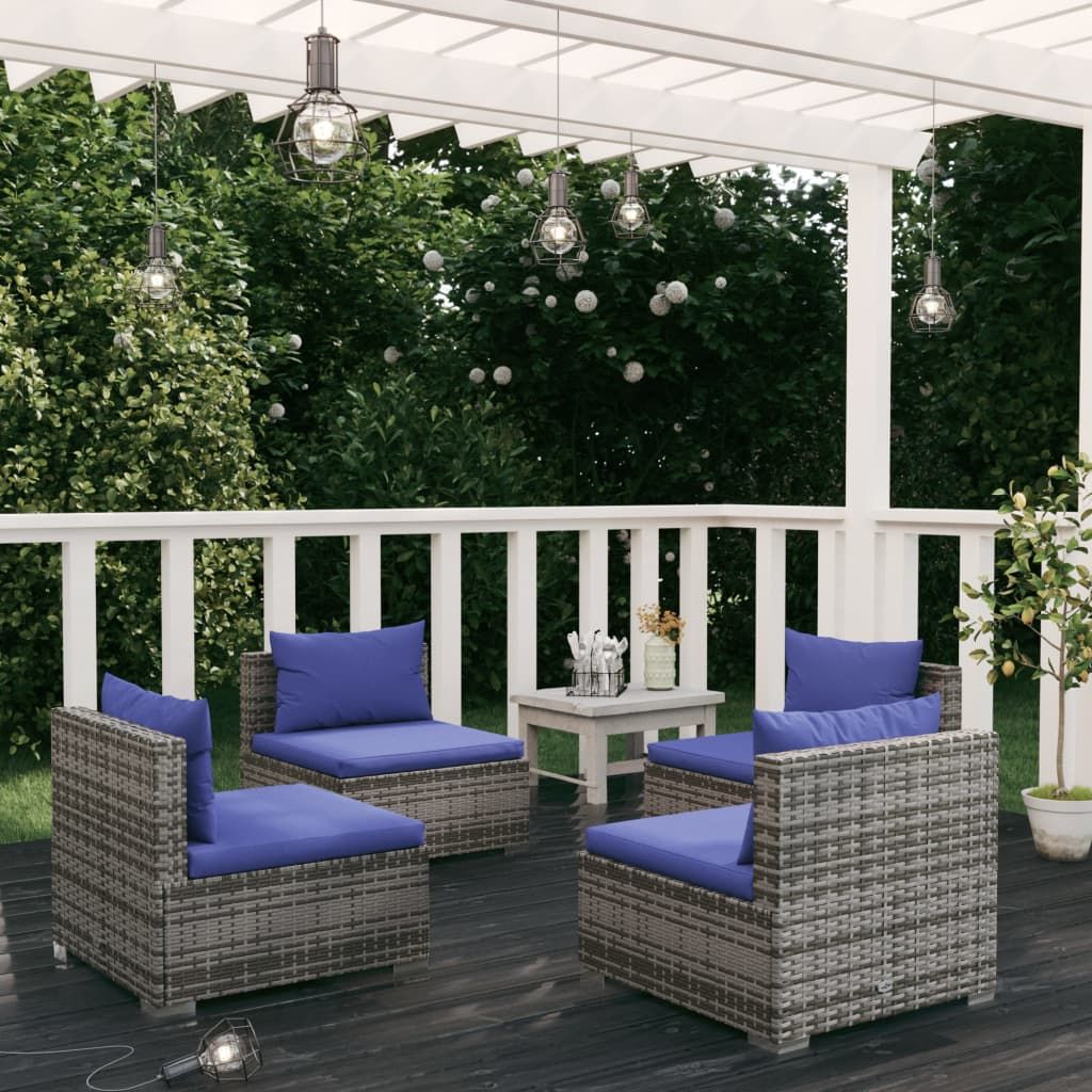4-cz. zestaw wypoczynkowy do ogrodu, poduszki, rattan PE, szary