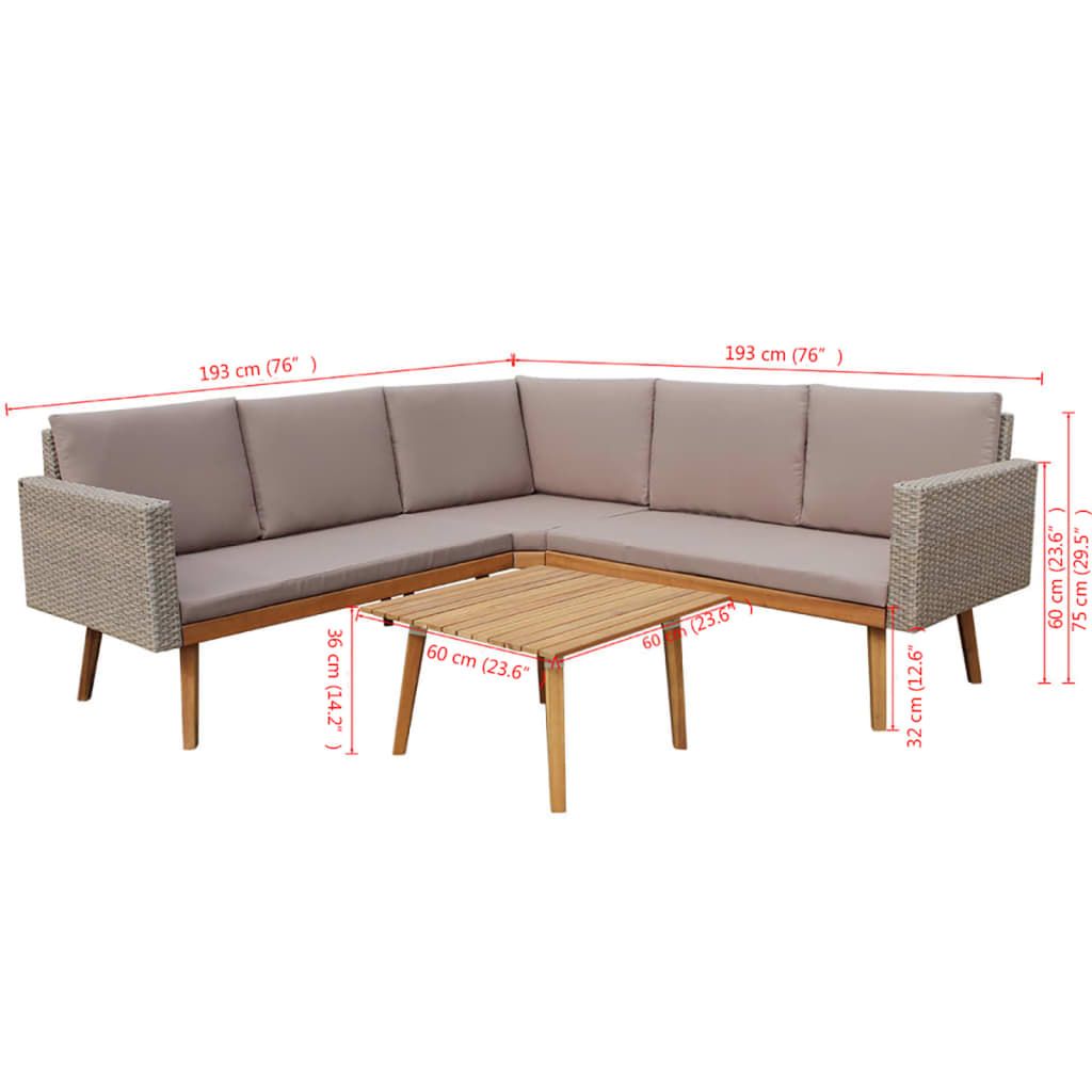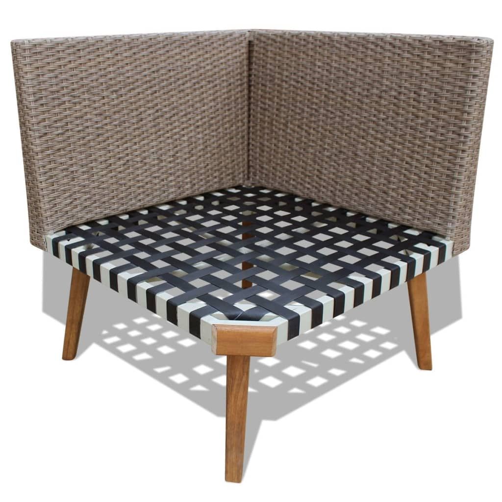 Ten zestaw mebli do ogrodu będzie znakomitym dodatkiem do przestrzeni na zewnątrz. Wniesie odrobinę nowoczesnej elegancji do Twojego patio lub ogrodu dzięki prostej, ale stylowej formie. Ten łatwy do czyszczenia oraz wytrzymały zestaw mebli ogrodowych został wykonany z odpornego na warunki atmosferyczne i wodoodpornego polirattanu, dzięki czemu świetnie nadaje się do codziennego użytku na zewnątrz. Olejowana, drewniana rama sprawia, że zestaw jest bardzo wytrzymały. Przesyłka zawiera wygodne, grubo wyściełane poduszki na siedziska oraz pod plecy. Ich poszewki są zapinane na suwak. Można je zdjąć i wyprać. W skład przesyłki wchodzą: 1 narożna sofa, 2 sofy dwuosobowe, 1 stolik kawowy, 6 poduszek pod plecy i 3 poduszki na siedziska. Uwaga: zalecamy przykrycie mebli na czas deszczu, śniegu i mrozu.