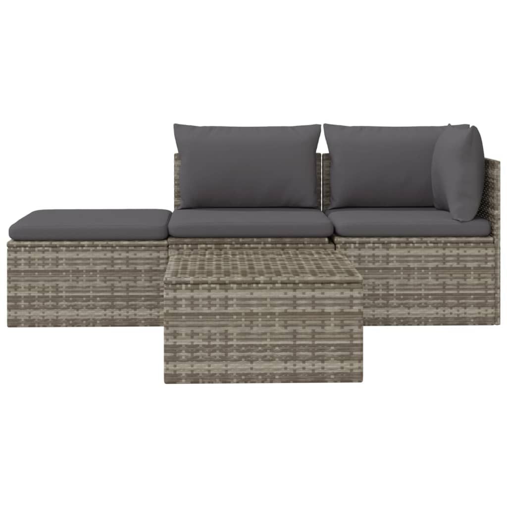 4-cz. zestaw wypoczynkowy do ogrodu, poduszki, szary rattan PE