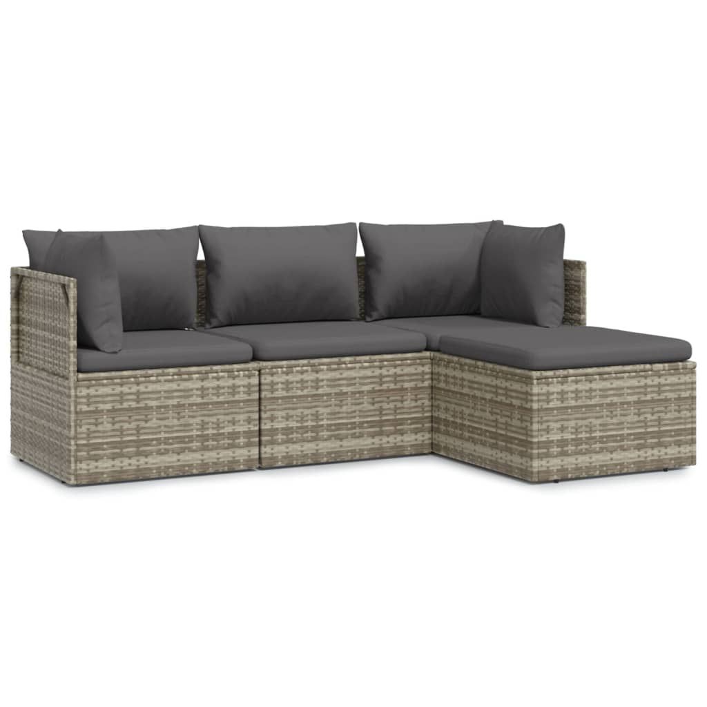 4-cz. zestaw wypoczynkowy do ogrodu, poduszki, szary rattan PE