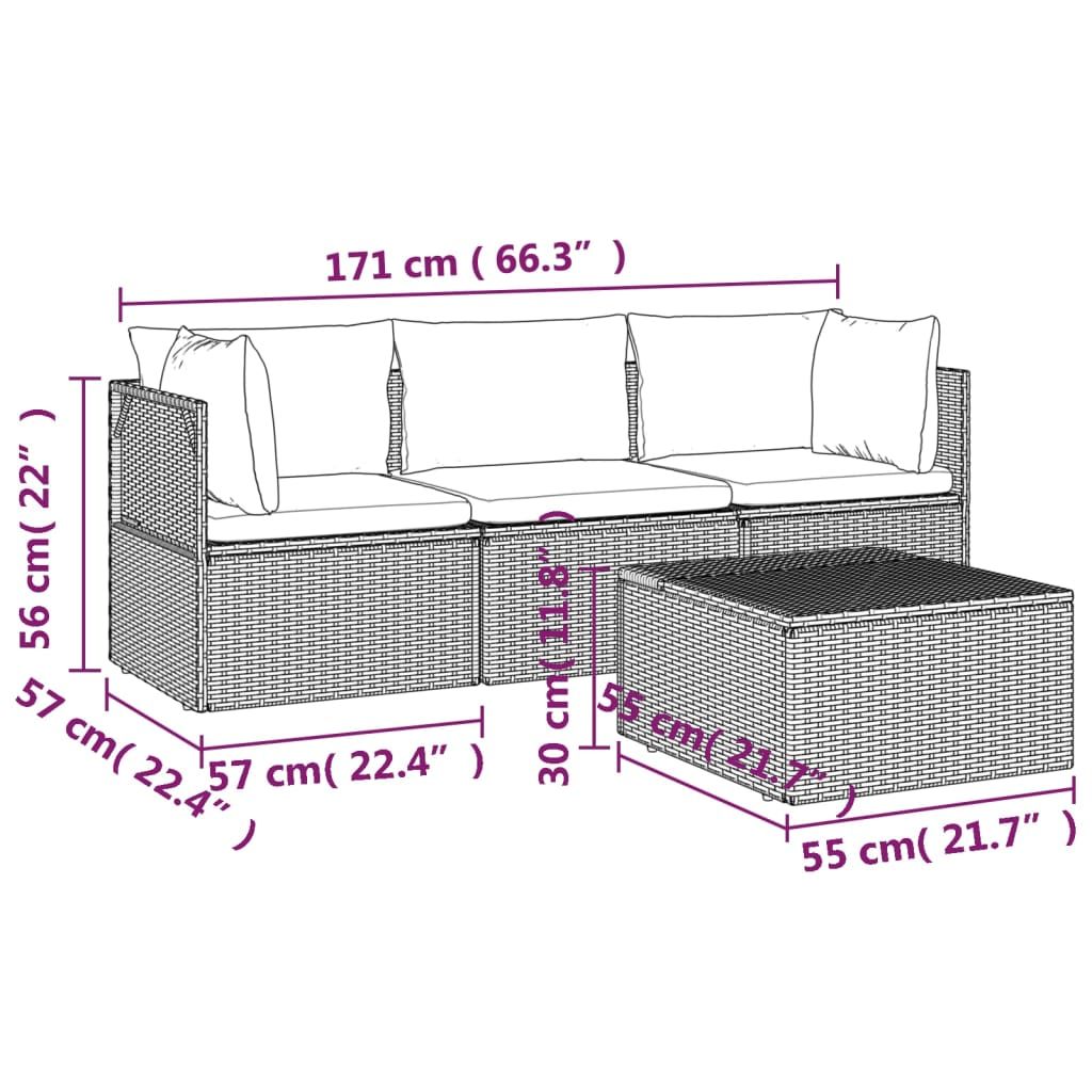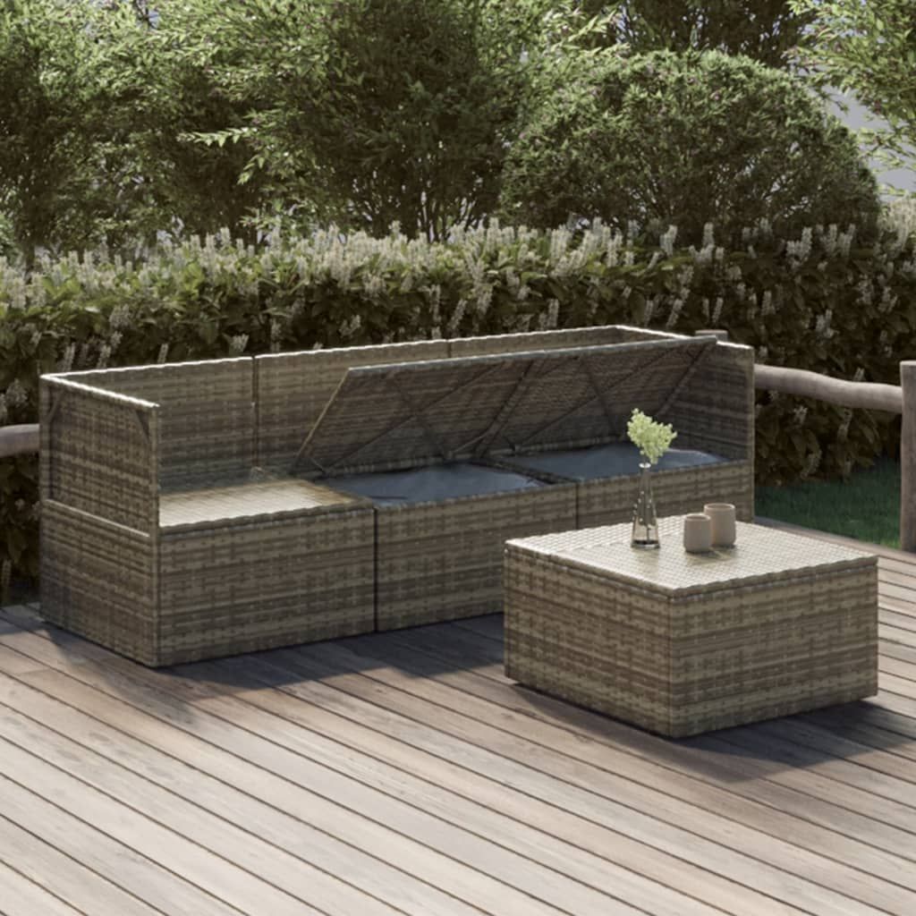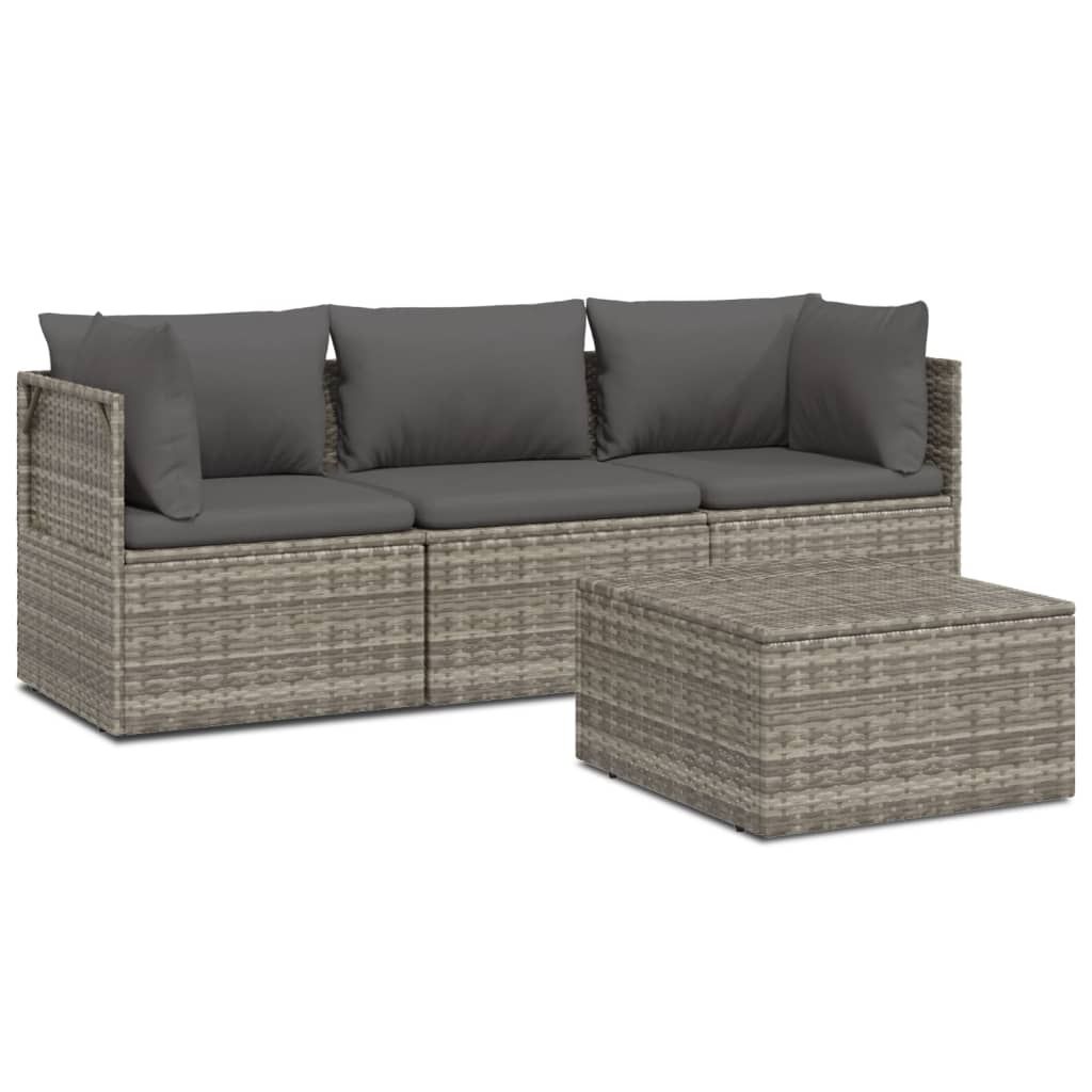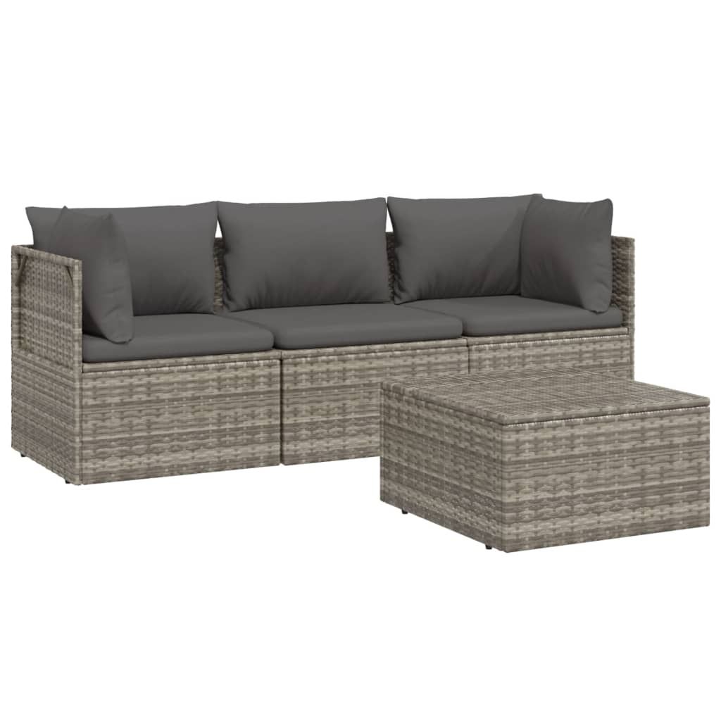 4-cz. zestaw wypoczynkowy do ogrodu, poduszki, szary rattan PE