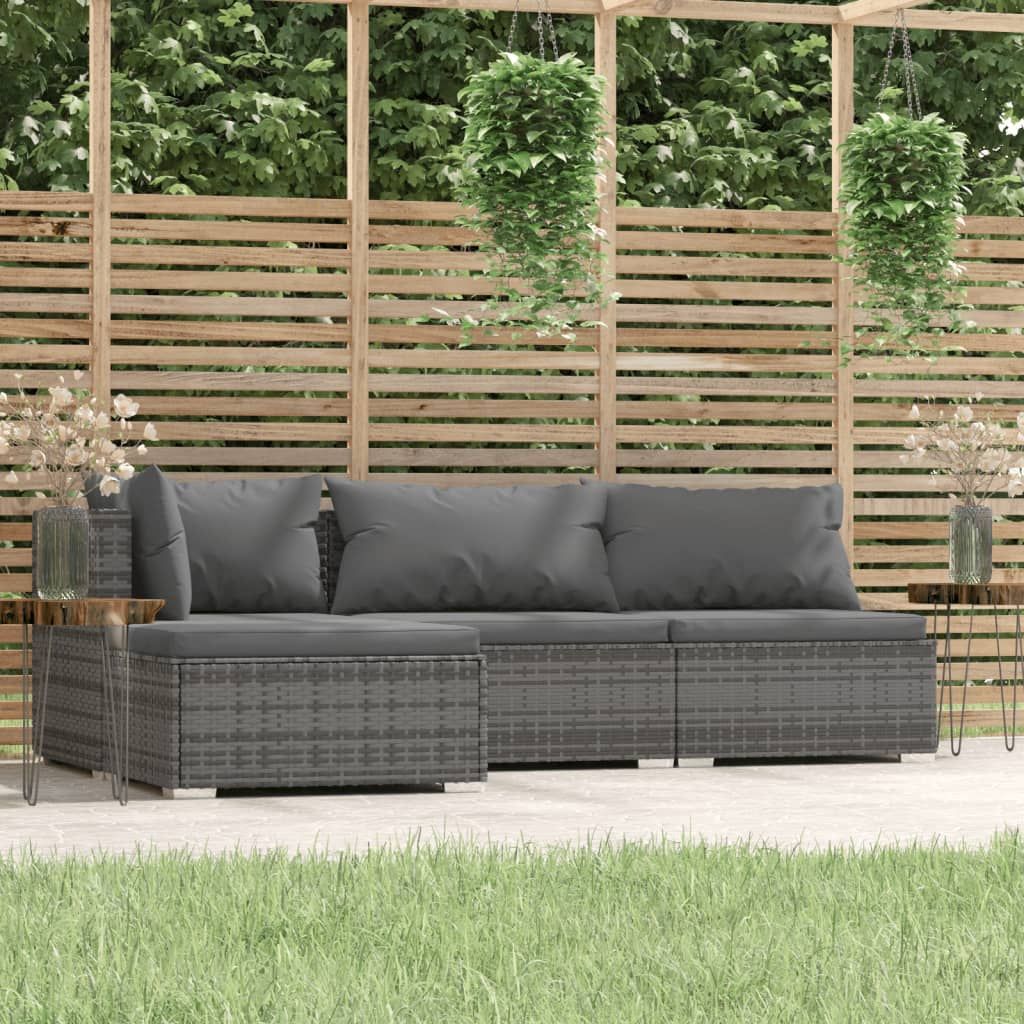 4-cz. zestaw wypoczynkowy do ogrodu, poduszki, szary rattan PE