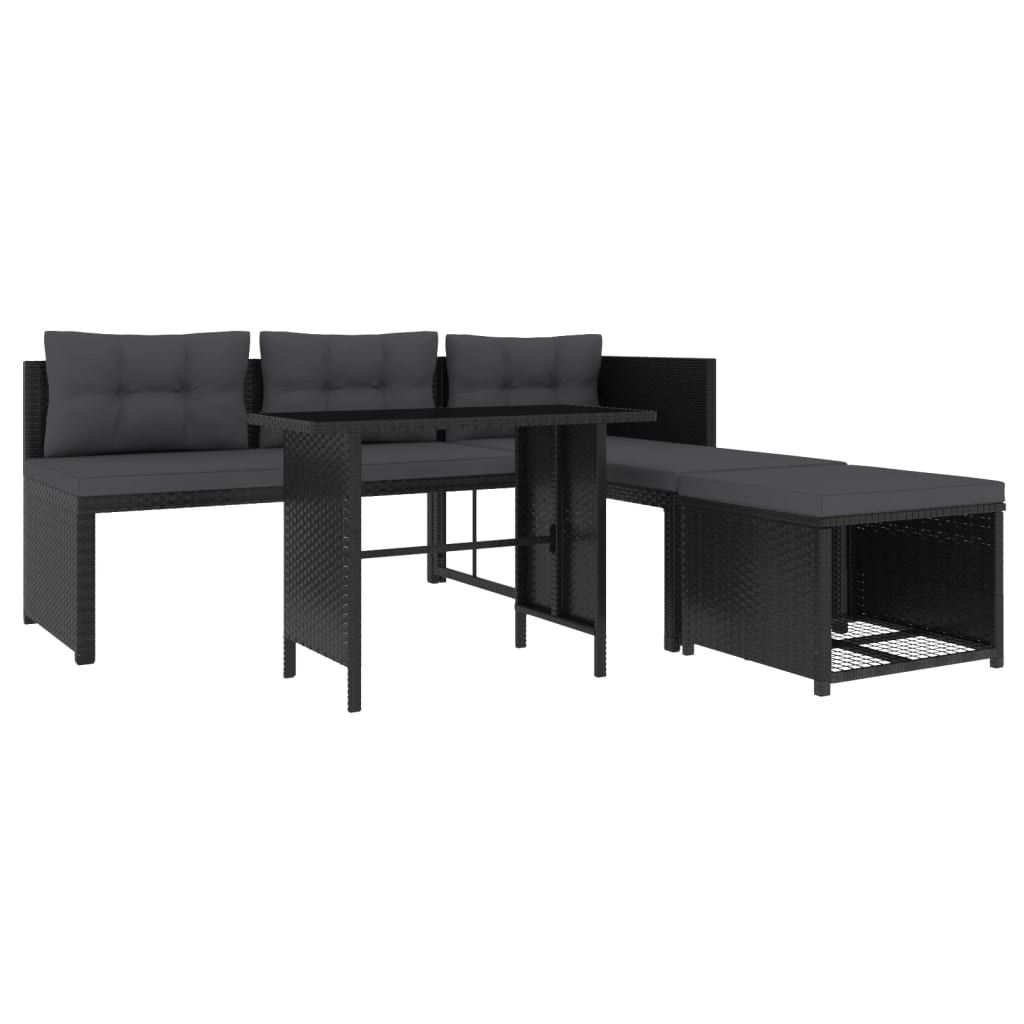 4-cz. zestaw wypoczynkowy do ogrodu, rattan PE, czarny
