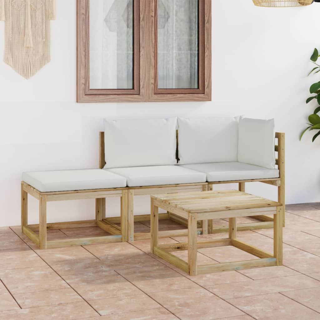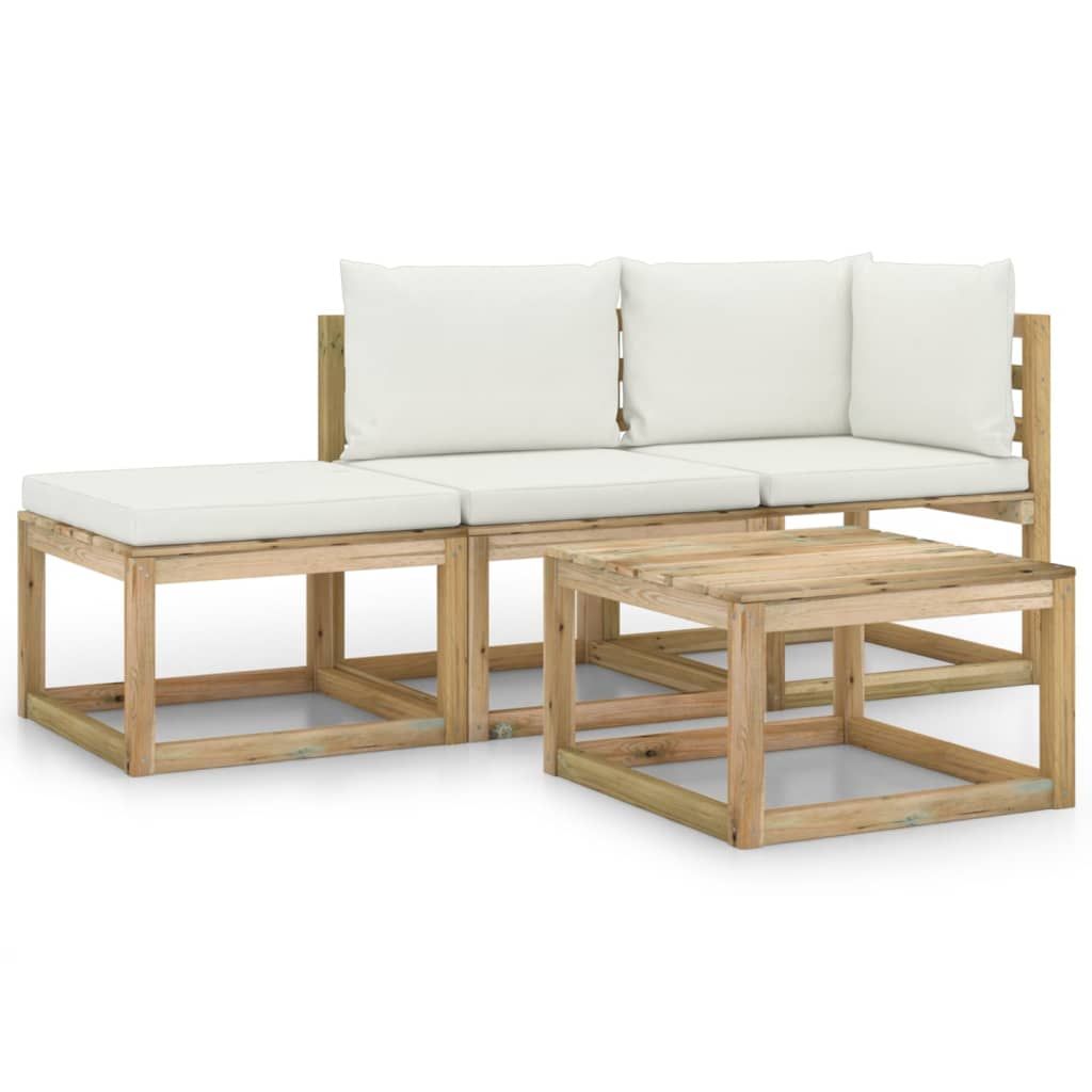 4-cz. zestaw wypoczynkowy do ogrodu, z kremowymi poduszkami