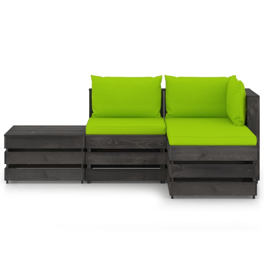 Ten ogrodowy zestaw wypoczynkowy stanowi znakomity wybór, aby się zrelaksować i nacieszyć dobrą pogodą albo zdrzemnąć lub porozmawiać z rodziną i przyjaciółmi. Za sprawą ponadczasowej konstrukcji z palet wniesie on odrobinę rustykalnego uroku na Twoje patio, do ogrodu lub do salonu. Wykonany z impregnowanego drewna sosnowego zestaw wypoczynkowy z palet jest trwały, odporny na czynniki atmosferyczne i przyjazny dla środowiska. Ma on solidną konstrukcję i nie wymaga zbyt wielu czynności konserwacyjnych. W połączeniu z grubo wyściełanymi poduszkami zapewnia najwyższy komfort. Dodatkowo modułowa konstrukcja umożliwia ustawienie go w dowolnej aranżacji, zgodnie z własnym gustem. Uwaga: aby przedłużyć żywotność mebli ogrodowych, zalecamy zabezpieczenie ich wodoodpornym pokrowcem.