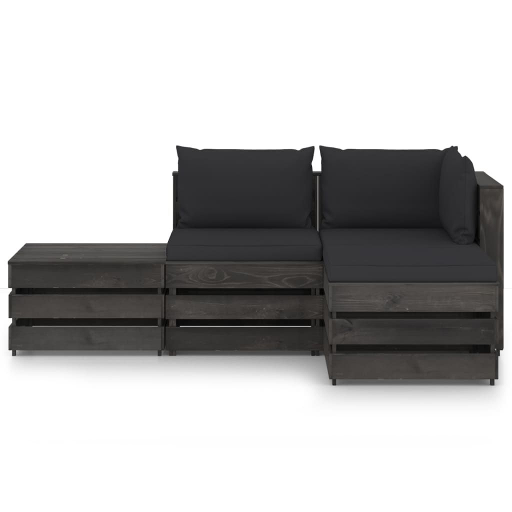 Ten ogrodowy zestaw wypoczynkowy stanowi znakomity wybór, aby się zrelaksować i nacieszyć dobrą pogodą albo zdrzemnąć lub porozmawiać z rodziną i przyjaciółmi. Za sprawą ponadczasowej konstrukcji z palet wniesie on odrobinę rustykalnego uroku na Twoje patio, do ogrodu lub do salonu. Wykonany z impregnowanego drewna sosnowego zestaw wypoczynkowy z palet jest trwały, odporny na czynniki atmosferyczne i przyjazny dla środowiska. Ma on solidną konstrukcję i nie wymaga zbyt wielu czynności konserwacyjnych. W połączeniu z grubo wyściełanymi poduszkami zapewnia najwyższy komfort. Dodatkowo modułowa konstrukcja umożliwia ustawienie go w dowolnej aranżacji, zgodnie z własnym gustem. Uwaga: aby przedłużyć żywotność mebli ogrodowych, zalecamy zabezpieczenie ich wodoodpornym pokrowcem.