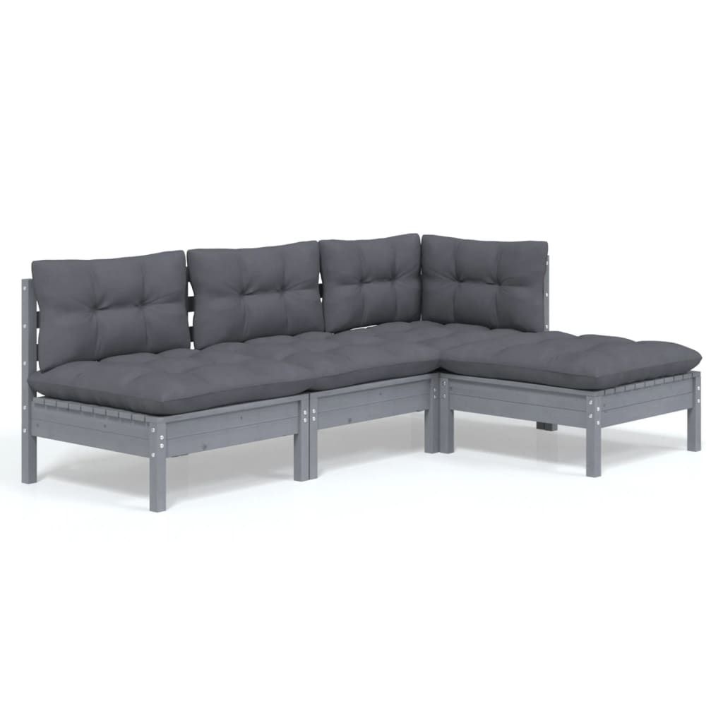4-cz. zestaw wypoczynkowy do ogrodu, z poduszkami, szara sosna