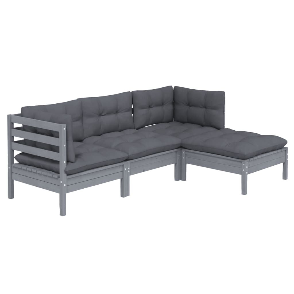4-cz. zestaw wypoczynkowy do ogrodu, z poduszkami, szara sosna