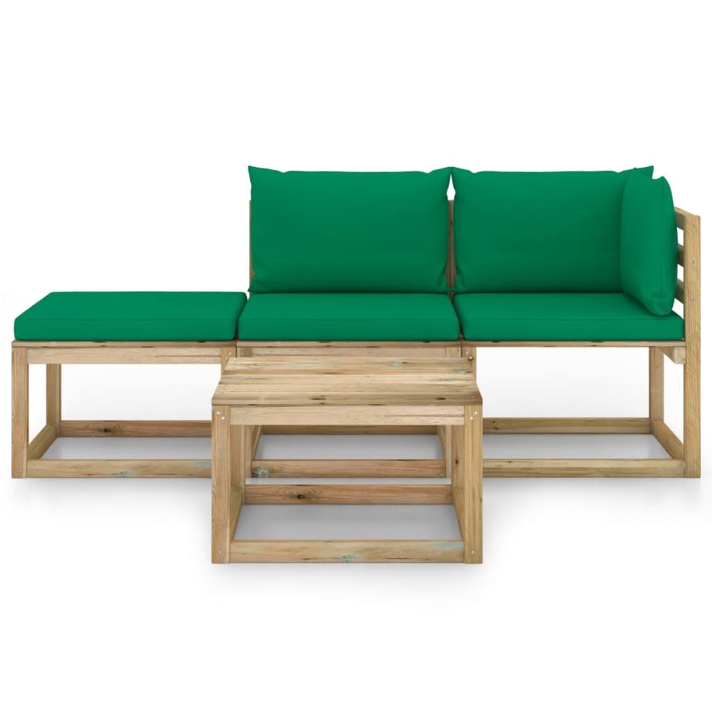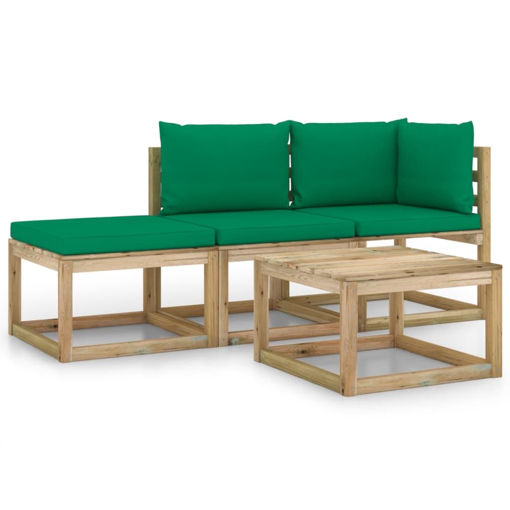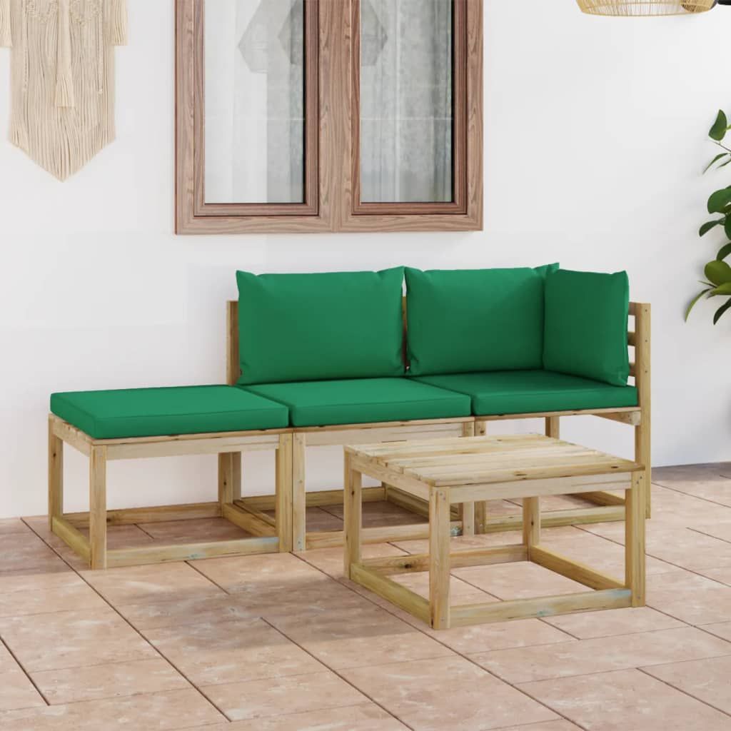 4-cz. zestaw wypoczynkowy do ogrodu, z zielonymi poduszkami