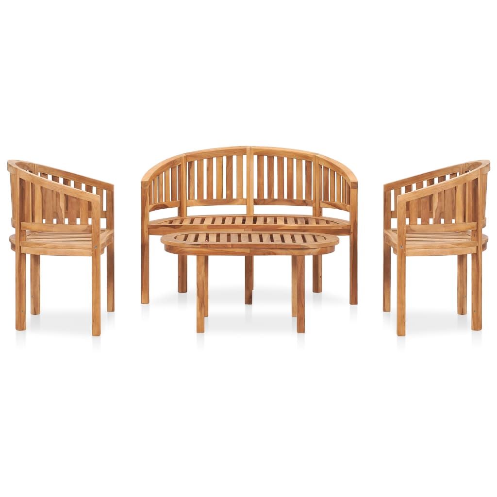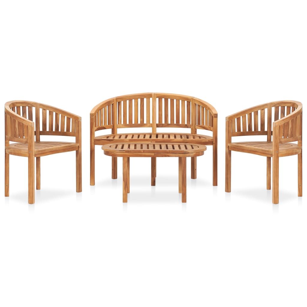 Stwórz relaksującą strefę wypoczynku za sprawą tego modnego zestawu drewnianych mebli do ogrodu. Meble wykonano z niezwykle wytrzymałego drewna tekowego, które było sezonowane, suszone komorowo i drobno szlifowane, aby nadać mu bardzo gładki wygląd. Drewno tekowe słynie ze swojej wyjątkowej wytrzymałości i odporności na warunki atmosferyczne, dzięki czemu jest o wiele bardziej odpowiednie do produkcji mebli ogrodowych niż jakiekolwiek inny rodzaj drewna. Tek to idealny wybór, jeśli chcesz kupić trwały mebel ogrodowy. Stolik ogrodowy ma solidny blat o konstrukcji listwowej. Co więcej zaokrąglona forma krzeseł i ławki nadaje zestawowi wyjątkowy urok.