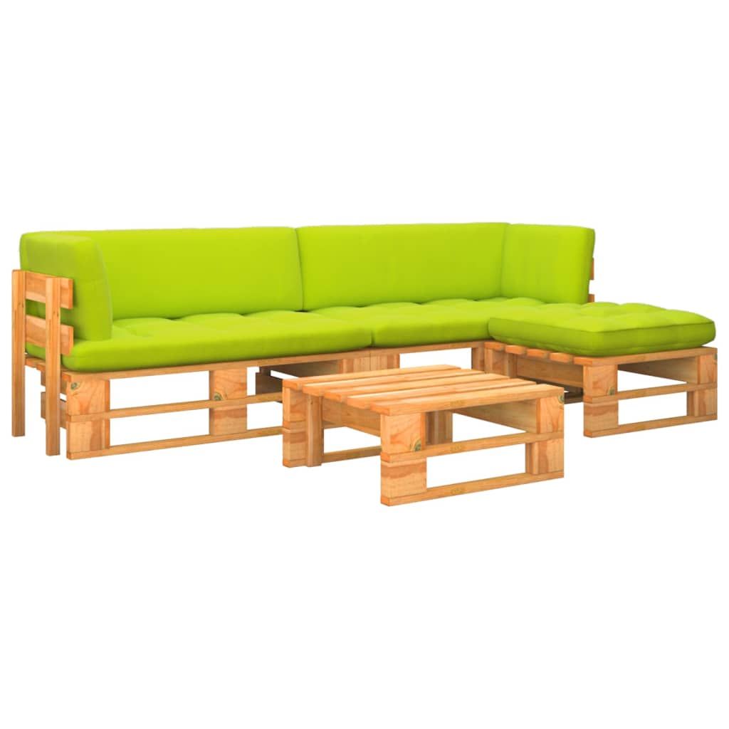 Ten ogrodowy zestaw mebli wypoczynkowych z drewnianych palet stanowi znakomity wybór, aby się zrelaksować i nacieszyć dobrą pogodą albo zdrzemnąć lub porozmawiać z rodziną lub przyjaciółmi. Za sprawą ponadczasowej konstrukcji z palet ten ogrodowy komplet wniesie odrobinę rustykalnego uroku na Twoje patio, do ogrodu lub do salonu. Wykonany z impregnowanego drewna sosnowego zestaw mebli ogrodowych jest trwały i odporny na czynniki atmosferyczne. Charakteryzuje się solidną konstrukcją i łatwością utrzymania. Wraz z dołączonymi poduszkami zapewni najwyższy komfort Tobie i Twoim gościom. Uwaga: aby przedłużyć żywotność mebli ogrodowych, zalecamy zabezpieczenie ich wodoodpornym pokrowcem.