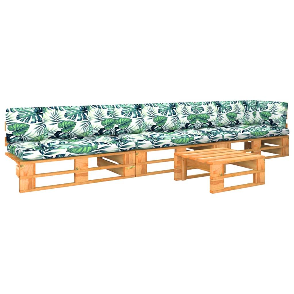 Ten ogrodowy zestaw mebli wypoczynkowych z drewnianych palet stanowi znakomity wybór, aby się zrelaksować i nacieszyć dobrą pogodą albo zdrzemnąć lub porozmawiać z rodziną lub przyjaciółmi. Za sprawą ponadczasowej konstrukcji z palet ten ogrodowy komplet wniesie odrobinę rustykalnego uroku na Twoje patio, do ogrodu lub do salonu. Wykonany z impregnowanego drewna sosnowego zestaw mebli ogrodowych jest trwały i odporny na czynniki atmosferyczne. Charakteryzuje się solidną konstrukcją i łatwością utrzymania. Wraz z dołączonymi poduszkami zapewni najwyższy komfort Tobie i Twoim gościom. Uwaga: aby przedłużyć żywotność mebli ogrodowych, zalecamy zabezpieczenie ich wodoodpornym pokrowcem.