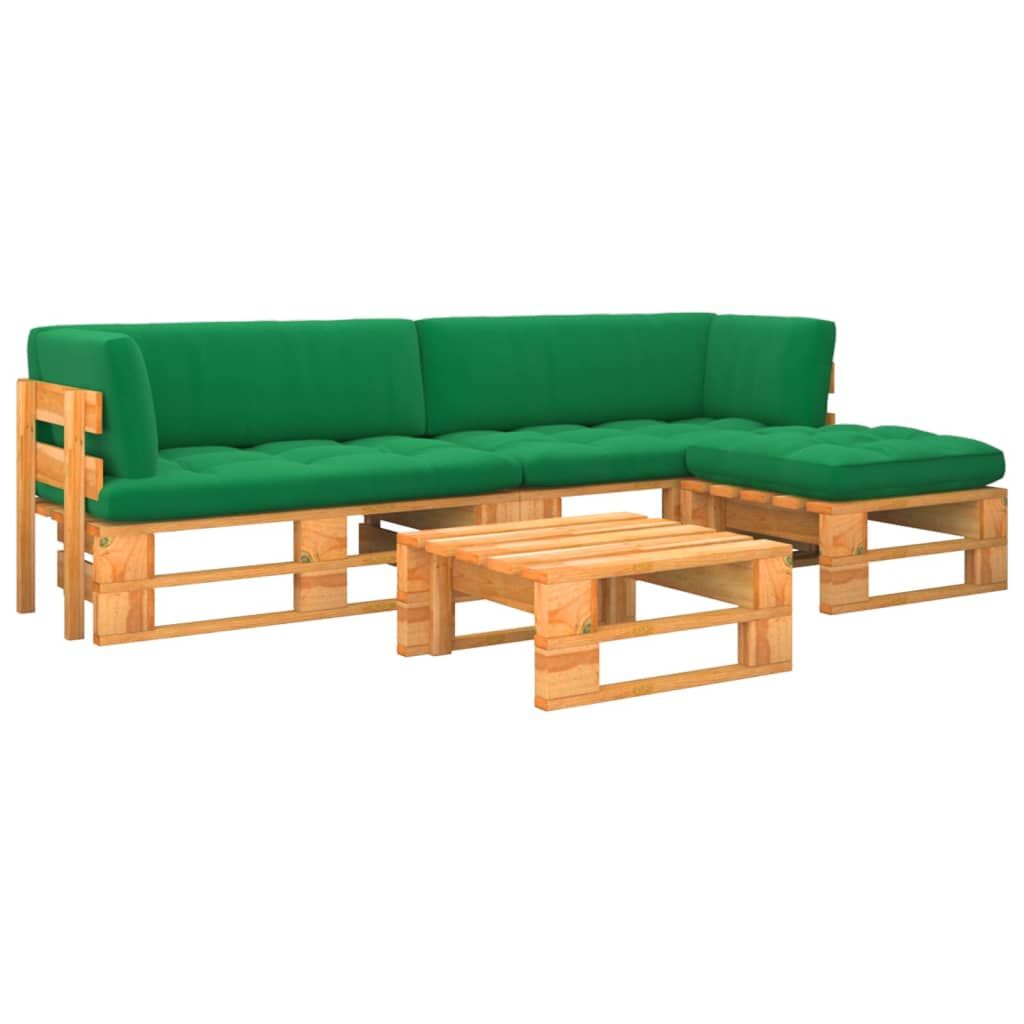Opis produktu: Ten ogrodowy zestaw mebli wypoczynkowych z drewnianych palet stanowi znakomity wybór, aby się zrelaksować i nacieszyć dobrą pogodą albo zdrzemnąć lub porozmawiać z rodziną lub przyjaciółmi. Za sprawą ponadczasowej konstrukcji z palet ten ogrodowy komplet wniesie odrobinę rustykalnego uroku na Twoje patio, do ogrodu lub do salonu. Wykonany z impregnowanego drewna sosnowego zestaw mebli ogrodowych jest trwały i odporny na czynniki atmosferyczne. Charakteryzuje się solidną konstrukcją i łatwością utrzymania. Wraz z dołączonymi poduszkami zapewni najwyższy komfort Tobie i Twoim gościom. Uwaga: aby przedłużyć żywotność mebli ogrodowych, zalecamy zabezpieczenie ich wodoodpornym pokrowcem.