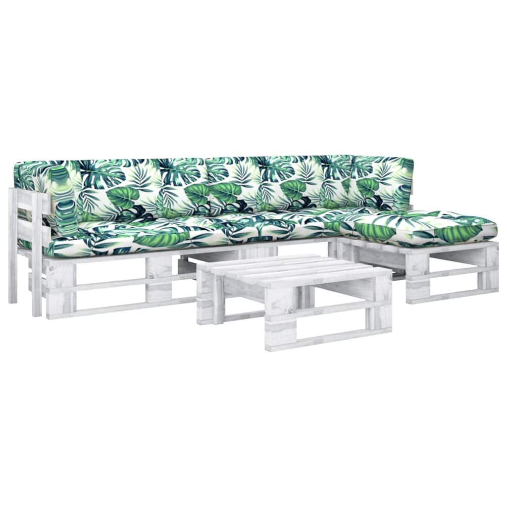 4-cz. zestaw wypoczynkowy z palet, z poduszkami, biały, sosna