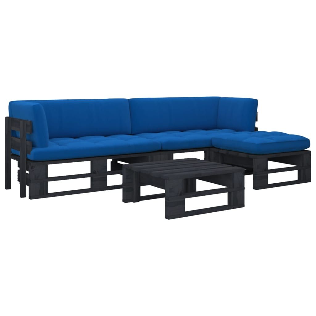 4-cz. zestaw wypoczynkowy z palet, z poduszkami, czarny, sosna