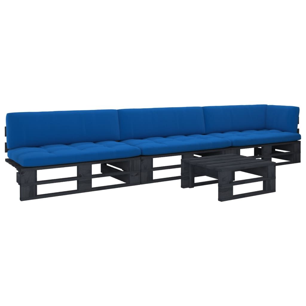 4-cz. zestaw wypoczynkowy z palet, z poduszkami, czarny, sosna