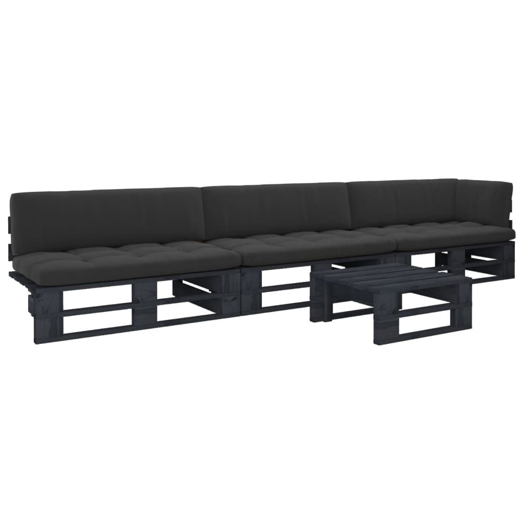 4-cz. zestaw wypoczynkowy z palet, z poduszkami, czarny, sosna