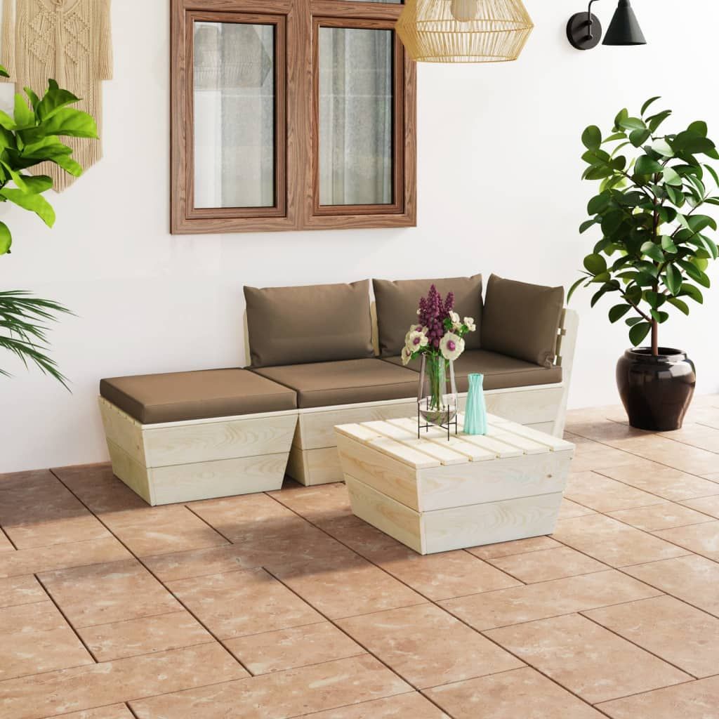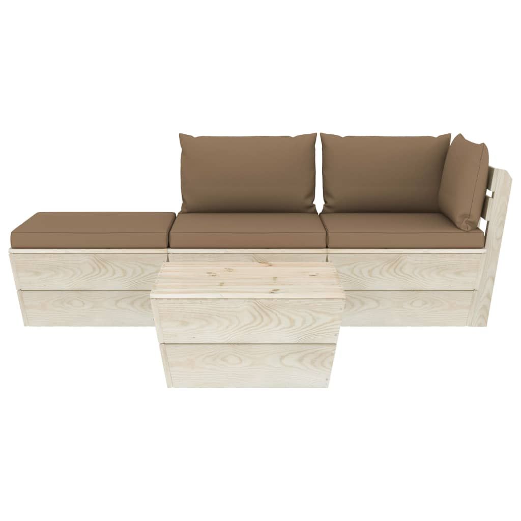4-cz. zestaw wypoczynkowy z palet, z poduszkami, świerk