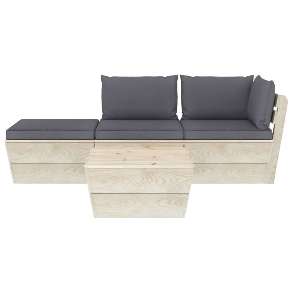 4-cz. zestaw wypoczynkowy z palet, z poduszkami, świerk
