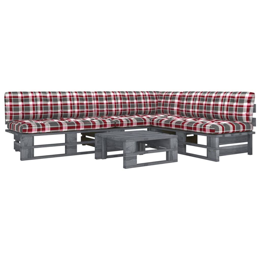 4-cz. zestaw wypoczynkowy z palet, z poduszkami, szary, sosna