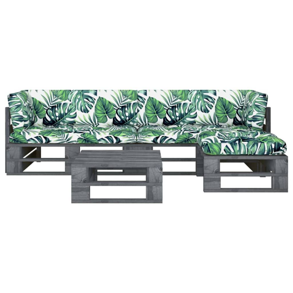 4-cz. zestaw wypoczynkowy z palet, z poduszkami, szary, sosna