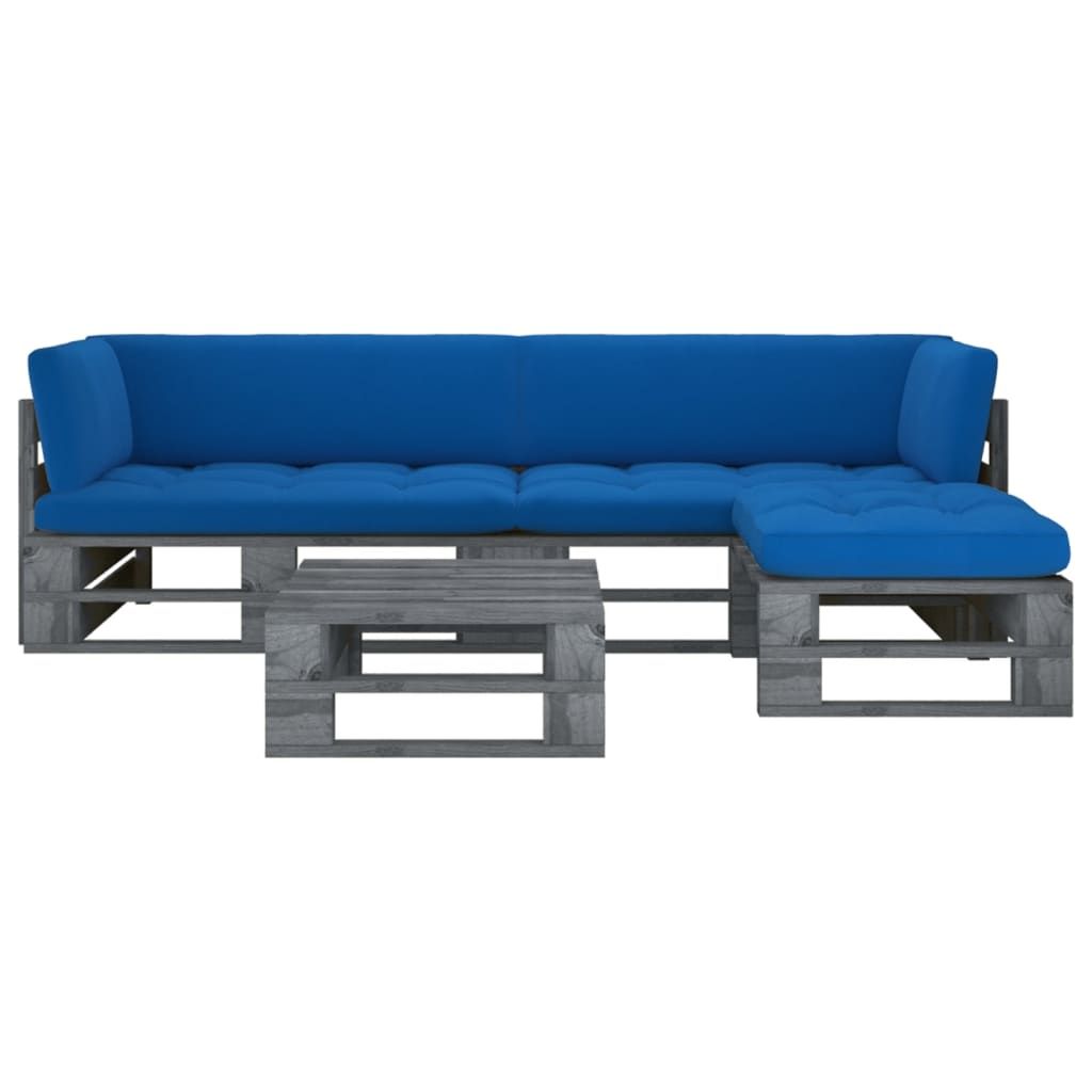 4-cz. zestaw wypoczynkowy z palet, z poduszkami, szary, sosna