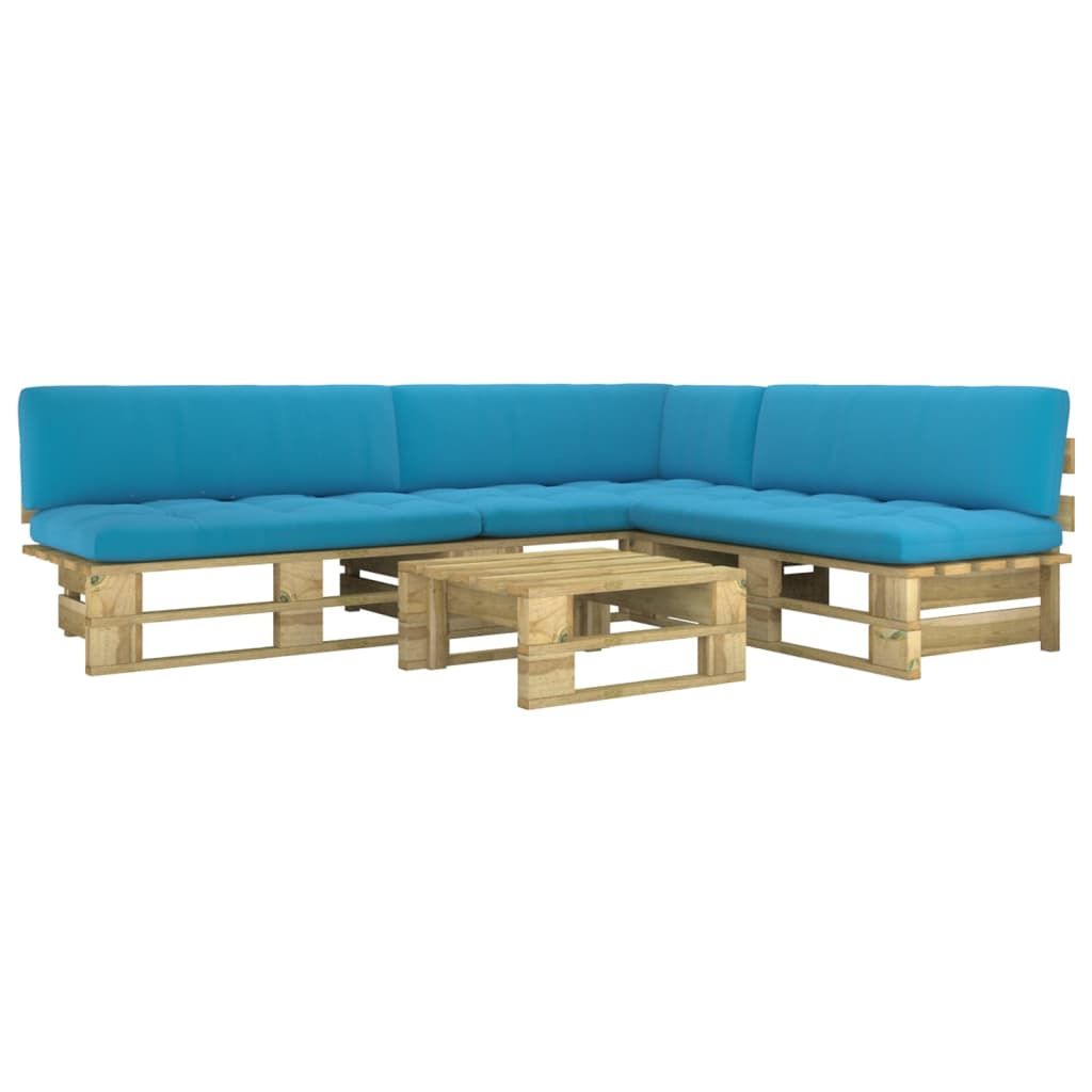 4-częściowy zestaw wypoczynkowy z palet, z poduszkami, sosna