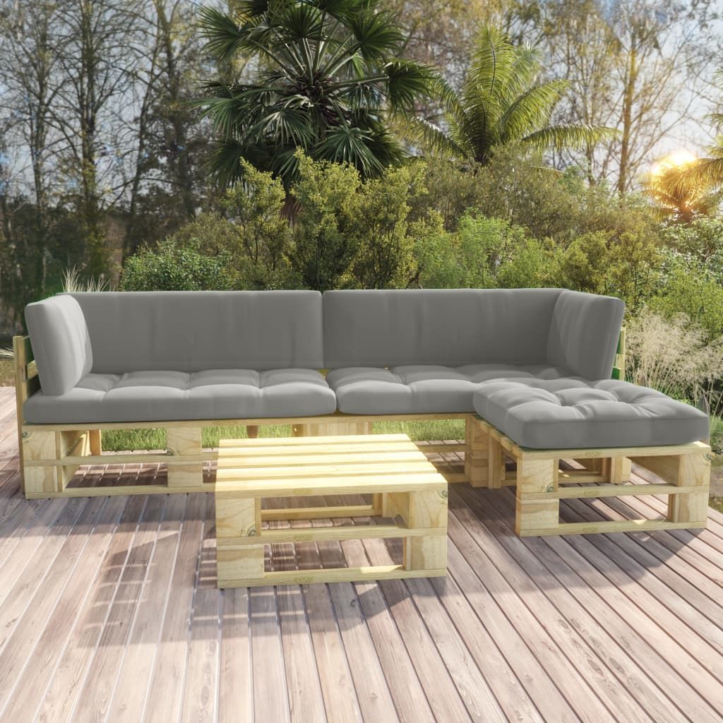 4-częściowy zestaw wypoczynkowy z palet, z poduszkami, sosna
