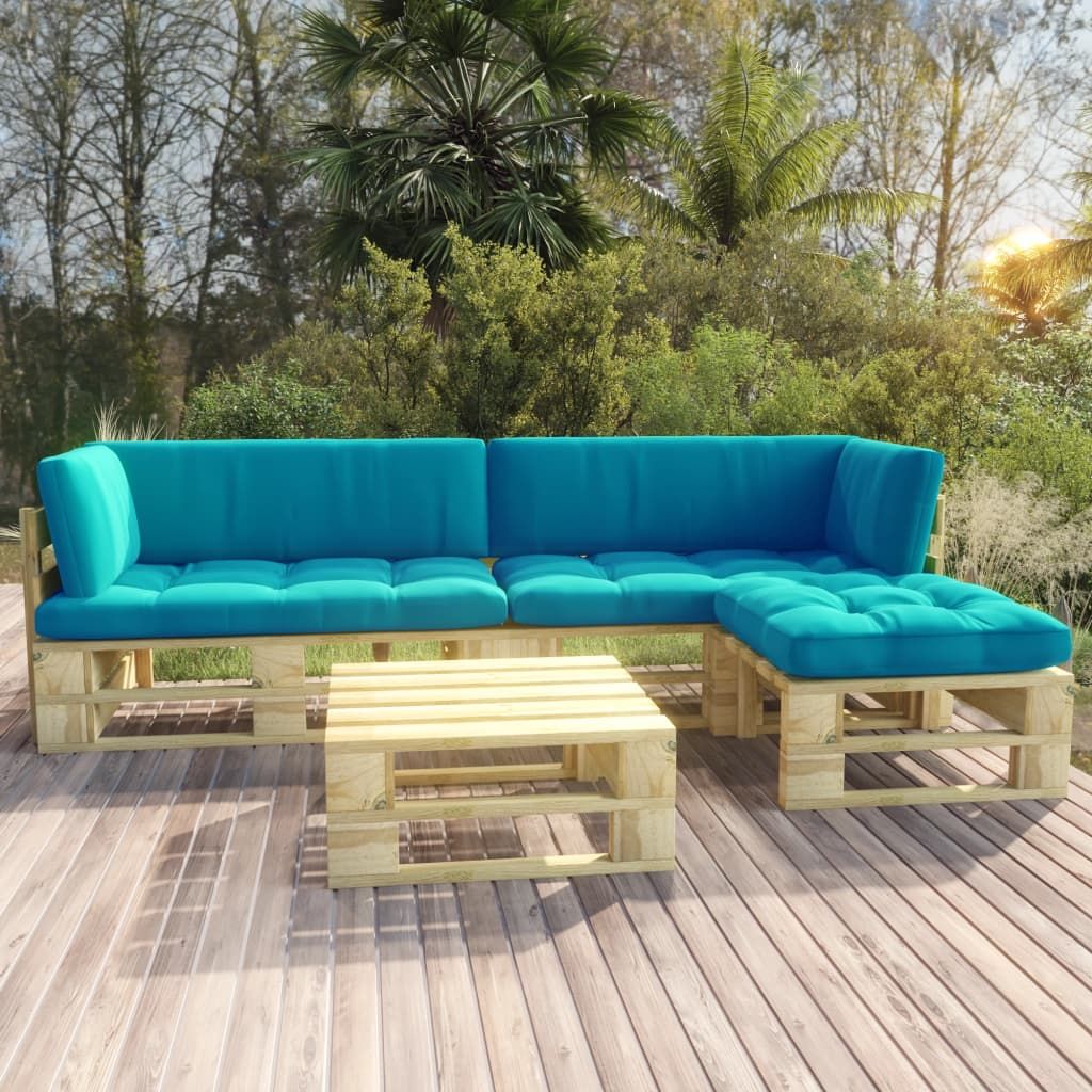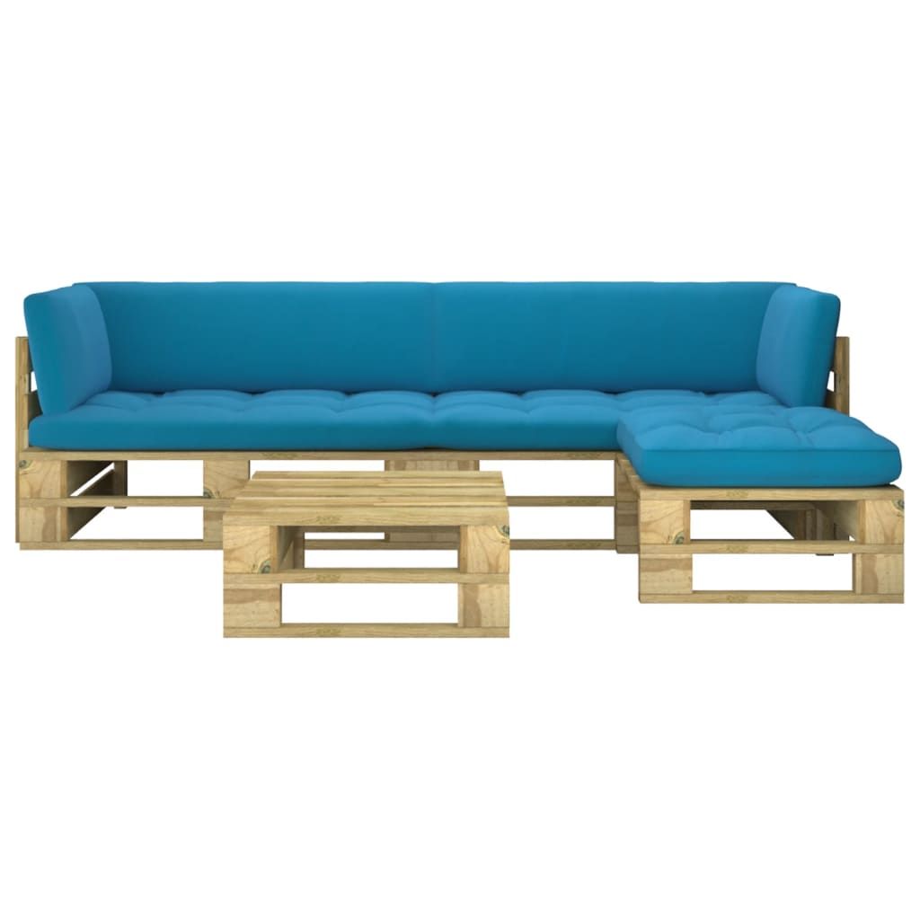 4-częściowy zestaw wypoczynkowy z palet, z poduszkami, sosna