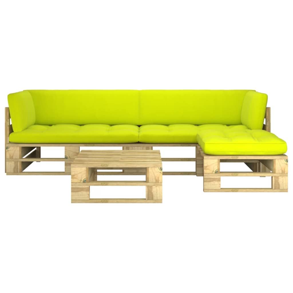 4-częściowy zestaw wypoczynkowy z palet, z poduszkami, sosna