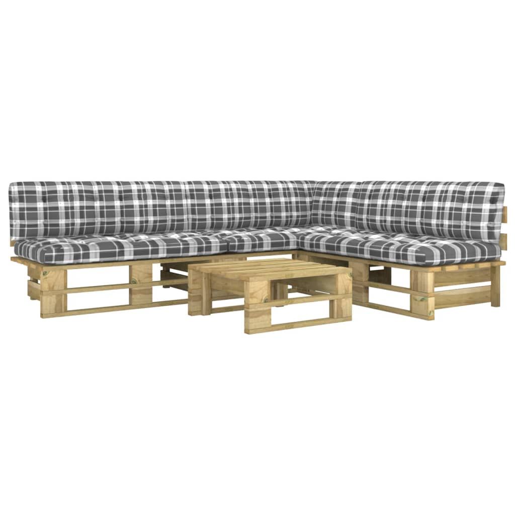 4-częściowy zestaw wypoczynkowy z palet, z poduszkami, sosna