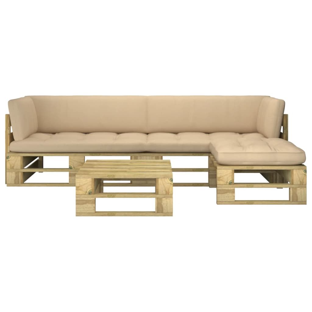 4-częściowy zestaw wypoczynkowy z palet, z poduszkami, sosna