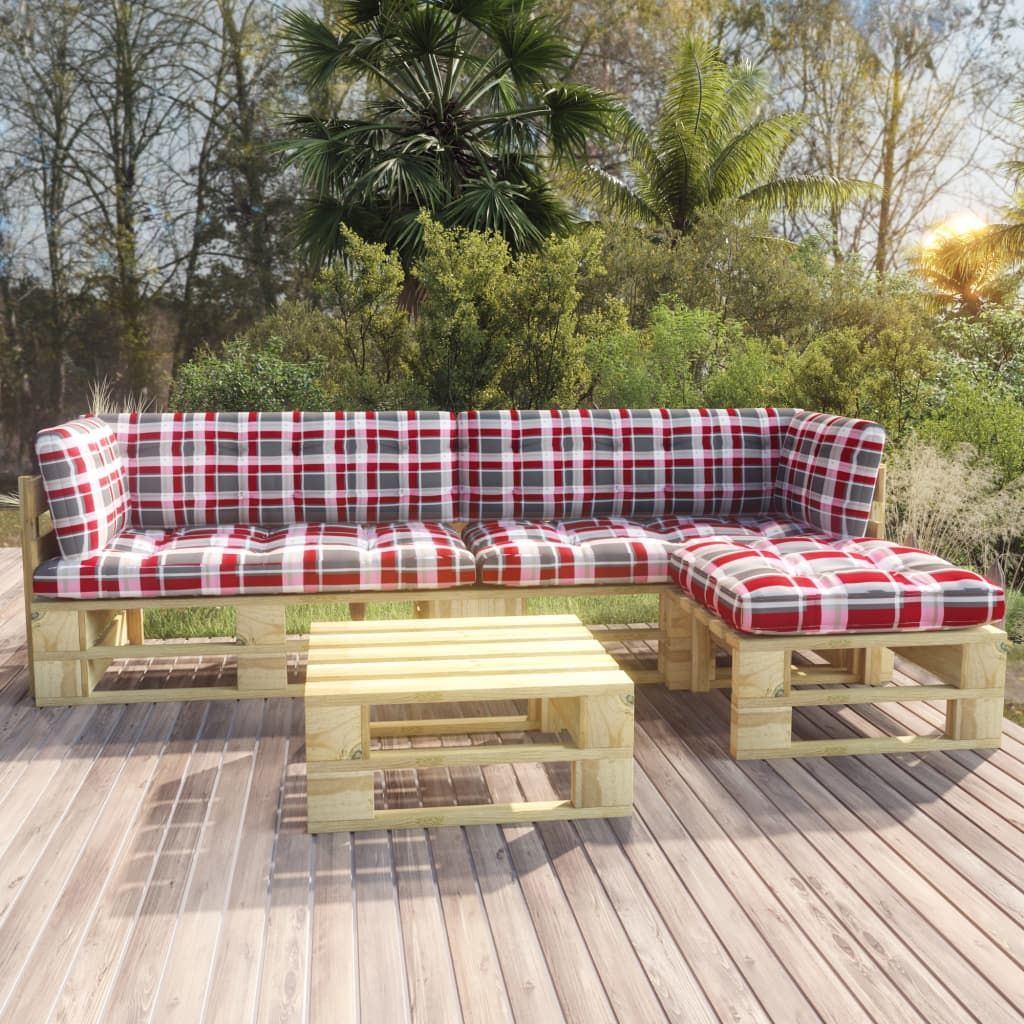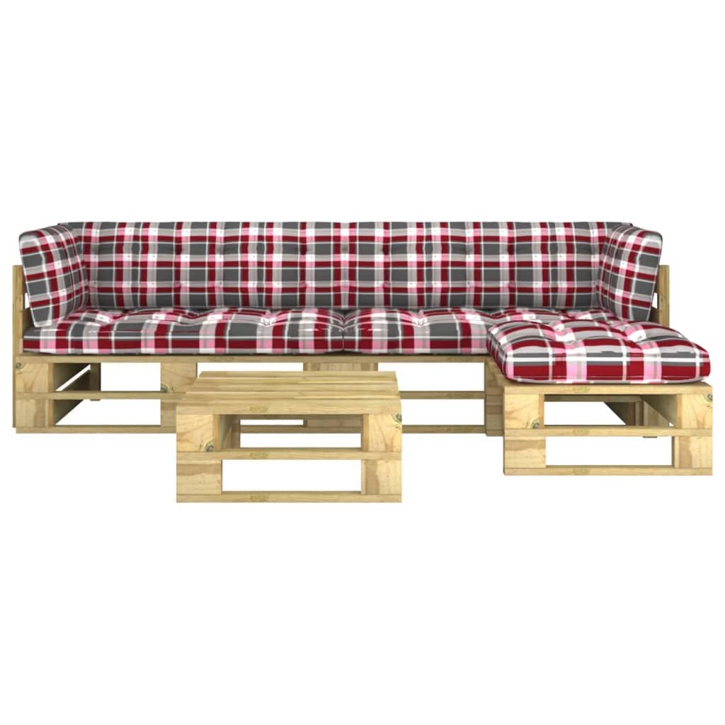 4-częściowy zestaw wypoczynkowy z palet, z poduszkami, sosna
