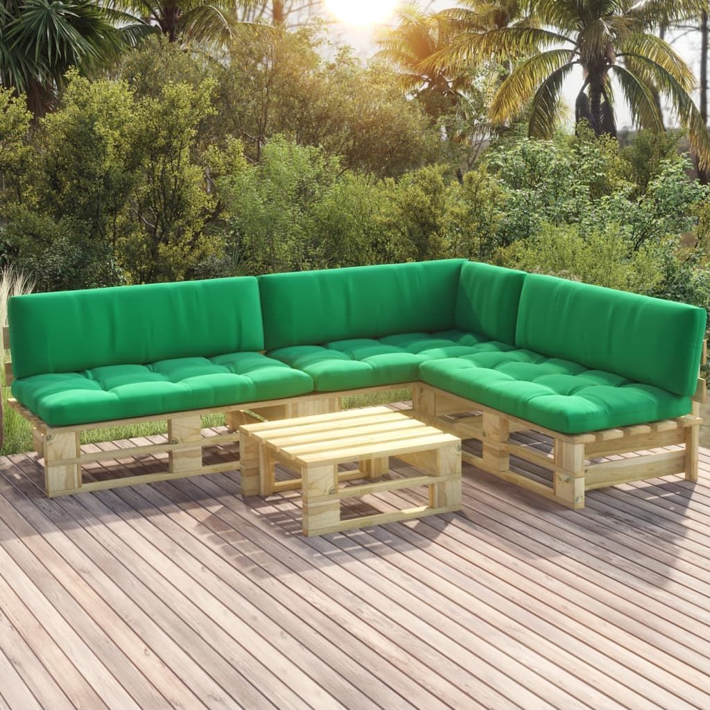 Opis produktu: Ten ogrodowy zestaw mebli wypoczynkowych z drewnianych palet stanowi znakomity wybór, aby się zrelaksować i nacieszyć dobrą pogodą albo zdrzemnąć lub porozmawiać z rodziną lub przyjaciółmi. Za sprawą ponadczasowej konstrukcji z palet ten ogrodowy komplet wniesie odrobinę rustykalnego uroku na Twoje patio, do ogrodu lub do salonu. Wykonany z impregnowanego drewna sosnowego zestaw mebli ogrodowych jest trwały i odporny na czynniki atmosferyczne. Charakteryzuje się solidną konstrukcją i łatwością utrzymania. Wraz z dołączonymi poduszkami zapewni najwyższy komfort Tobie i Twoim gościom. Uwaga: aby przedłużyć żywotność mebli ogrodowych, zalecamy zabezpieczenie ich wodoodpornym pokrowcem.