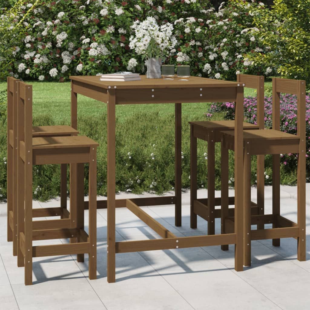 5-cz. zestaw mebli barowych do ogrodu, miodowy brąz, sosnowy