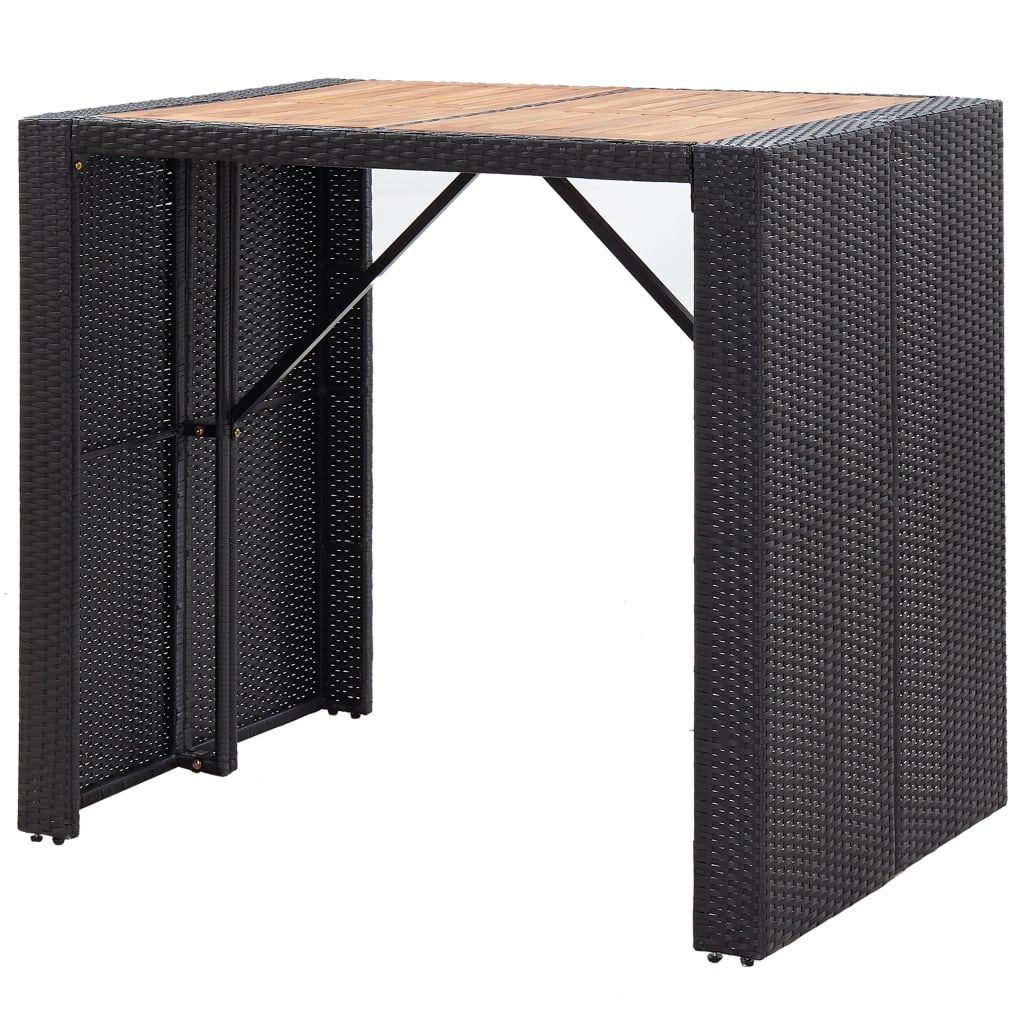 5-cz. zestaw mebli barowych, rattan PE i akacja, czarny