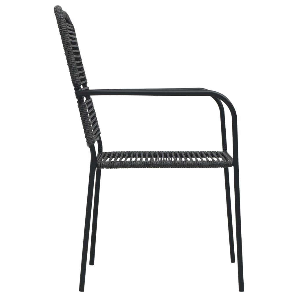 Pięcioczęściowy zestaw do jadalni w ogrodzie to idealny wybór do Twojego salonu na świeżym powietrzu. Jest zaprojektowany by wnieść uroczy styl retro do tarasu i ogrodu. Stół został wykonany z solidnej, malowanej proszkowo stali, która jest stabilna i trwała. Czarny blat z jedwabnym nadrukiem jest łatwy do czyszczenia. Krzesło wykonano z bawełnianego sznurka, oplecionego wokół malowanej proszkowo, stalowej ramy. Odporny na promieniowanie UV komplet gwarantuje wysoki poziom komfortu i relaksu!