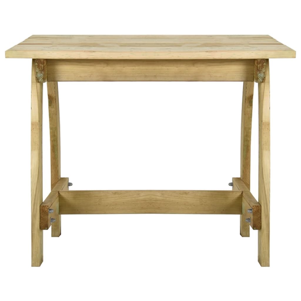 Opis produktu: Stylowy, a przy tym praktyczny zestaw mebli ogrodowych sprawi, że Twój salon na świeżym powietrzu zyska klasę! Wykonany z impregnowanego na zielono drewna sosnowego zestaw mebli jest bardzo mocny, trwały i odporny na korozję. Stanowi on idealny wybór do relaksu w romantycznym ogrodzie przy domu wiejskim lub nad idyllicznym oczkiem wodnym oraz spożywania posiłków z rodziną i przyjaciółmi. Prosimy mieć na uwadze, że drewno jest materiałem naturalnym i może wykazywać pewne niedoskonałości. Uwaga: aby przedłużyć żywotność mebli ogrodowych, zalecamy zabezpieczenie ich wodoodpornym pokrowcem.