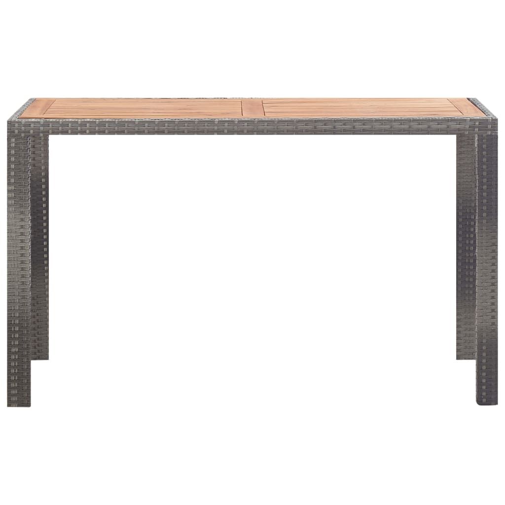 - Materiał: stalowa rama + rattan PE + blat z drewna akacjowego o naturalnym wykończeniu olejowym