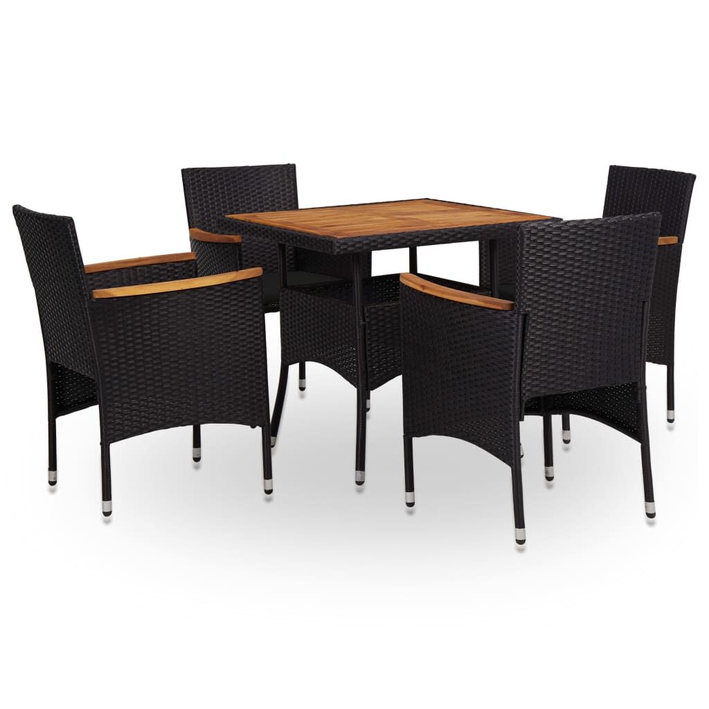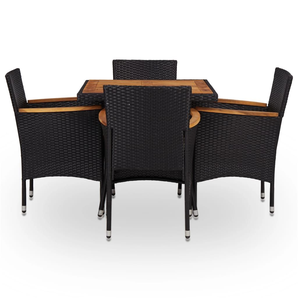 5-cz. zestaw mebli ogrodowych, rattan PE i akacja, czarny