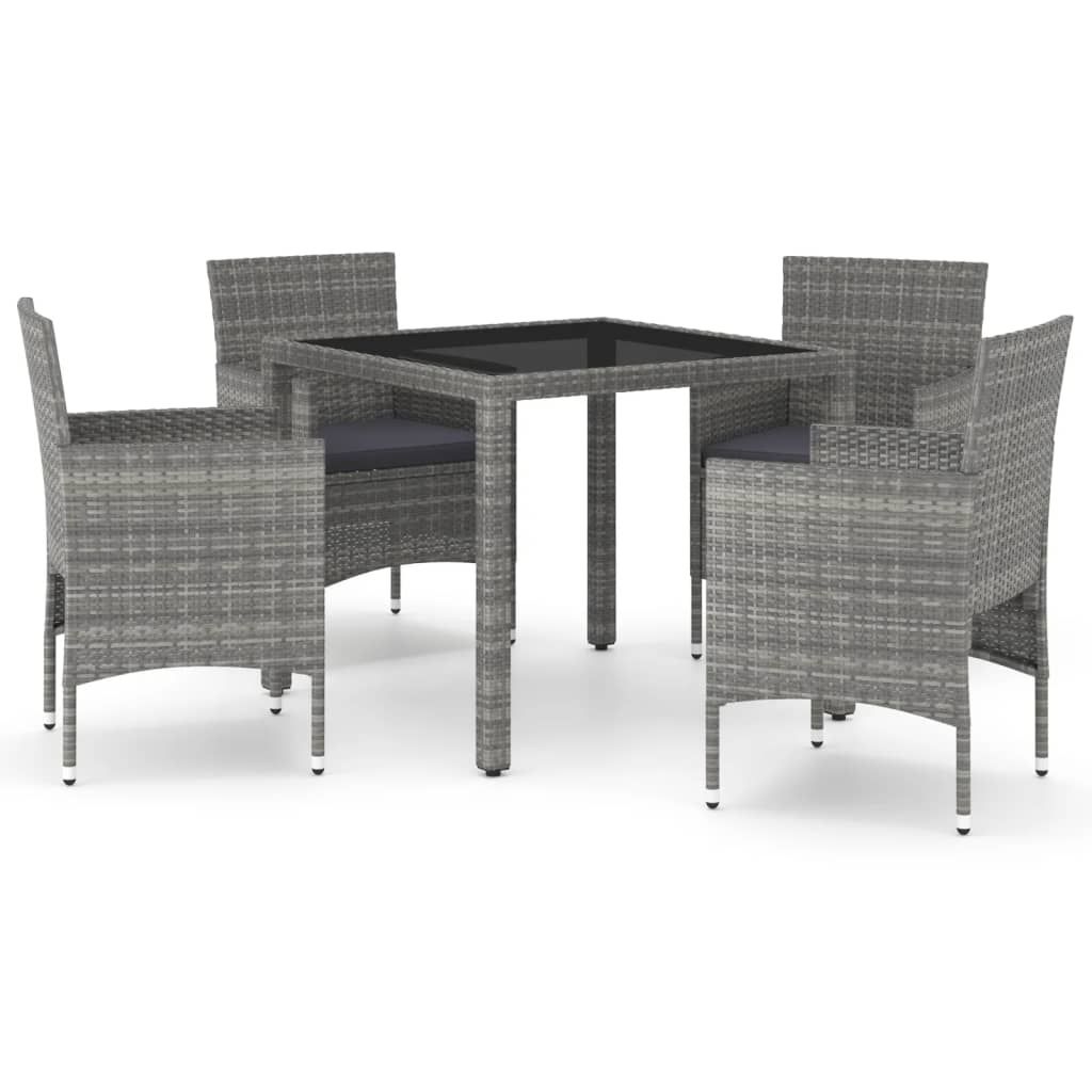 5-cz. zestaw mebli ogrodowych, rattan PE i szkło, szary