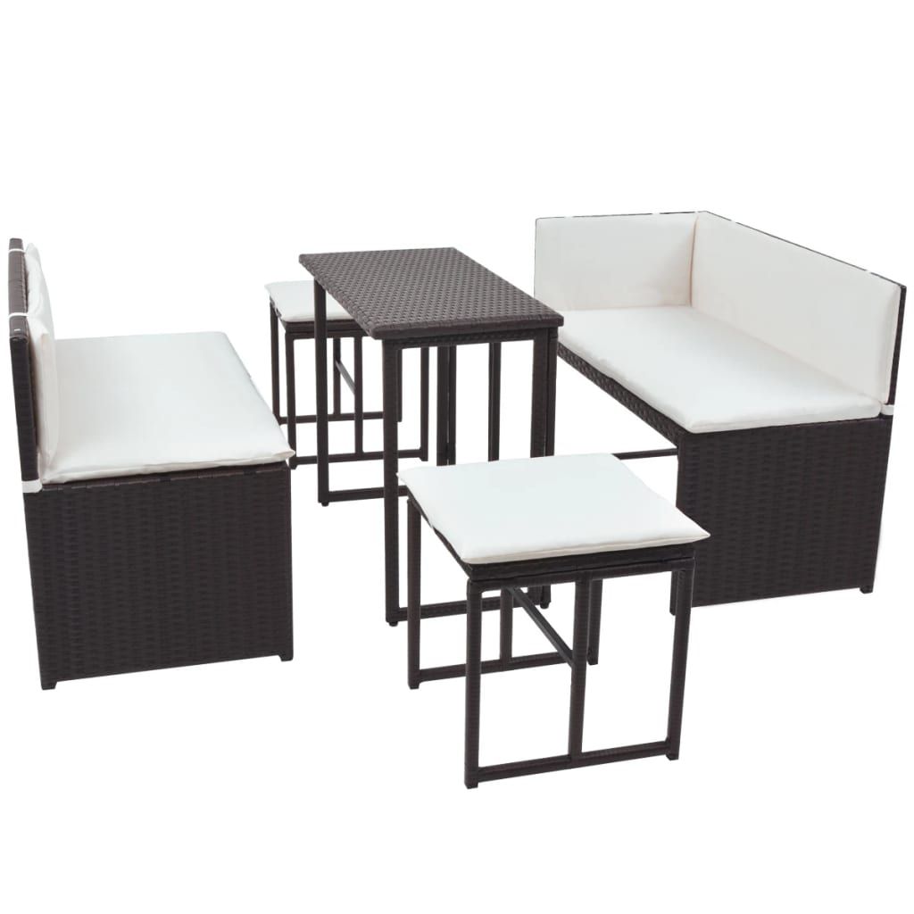 Ten stylowy, ale bardzo wygodny ogrodowy zestaw wypoczynkowy będzie przyciągał wzrok w Twoim ogrodzie lub na tarasie. Zestaw mebli ogrodowych wykonany jest z odpornego na warunki atmosferyczne ratanu PE, dzięki czemu jest łatwy w czyszczeniu i wytrzymały na co dzień. Kanapa, stół i taborety mają solidną i wytrzymałą, stalową ramę malowaną proszkowo. Zdejmowane poduszki na siedziska i na oparcia są bardzo wygodne, a ich poliestrowe poszewki są miękkie i łatwe do czyszczenia. Ten lekki, modułowy zestaw mebli rattanowych może być łatwo przemieszczany i dopasowany do każdego otoczenia. W skład przesyłki wchodzi sofa narożna, sofa 2-osobowa, składany stolik, 2 taborety, 4 poduszki na siedziska i 3 poduszki pod plecy. Uwaga: Zalecamy przykrycie zestawu na czas opadów deszczu, śniegu i mrozu.
