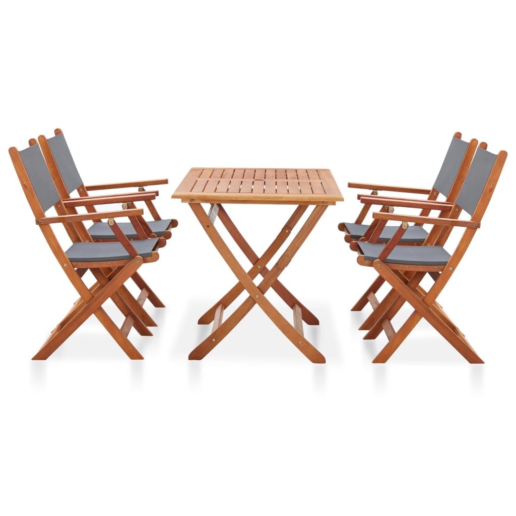 Nadaj swojemu patio, ogródkowi i innej przestrzeni na zewnątrz piękny i naturalny wygląd dzięki naszemu rustykalnemu, a jednocześnie eleganckiemu zestawowi mebli jadalnianych. Nasz drewniany zestaw mebli będzie głównym punktem Twojego ogrodu, tarasu lub patio. Komplet jadalniany wykonany jest z litego drewna eukaliptusowego, które jest odporne na warunki atmosferyczne i trwałe, co zapewnia wiele lat użytkowania. Tymczasem krzesła o ergonomicznym kształcie gwarantują optymalny komfort siedzenia. Wykończona olejem powierzchnia jest również łatwa do czyszczenia za pomocą wilgotnej ściereczki. Za sprawą przemyślanej konstrukcji ten zestaw mebli ogrodowych można złożyć, aby zaoszczędzić miejsce, gdy nie jest używany.
