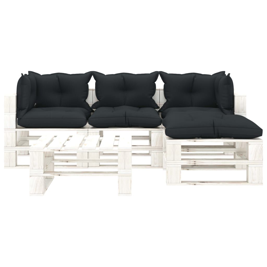 5-cz. zestaw mebli ogrodowych z palet, antracytowe poduszki