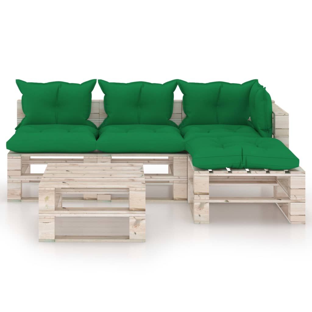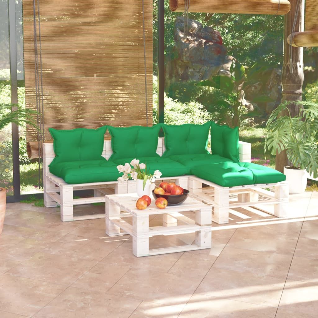 5-cz. zestaw mebli ogrodowych z palet, z poduszkami, sosna