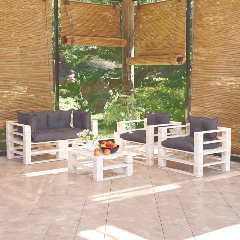 5-cz. zestaw mebli ogrodowych z palet, z poduszkami, sosna