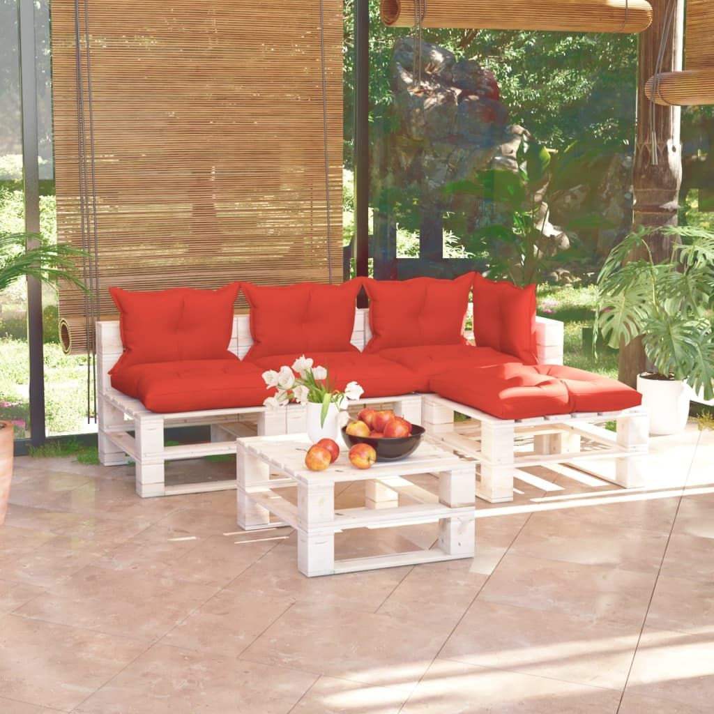5-cz. zestaw mebli ogrodowych z palet, z poduszkami, sosna