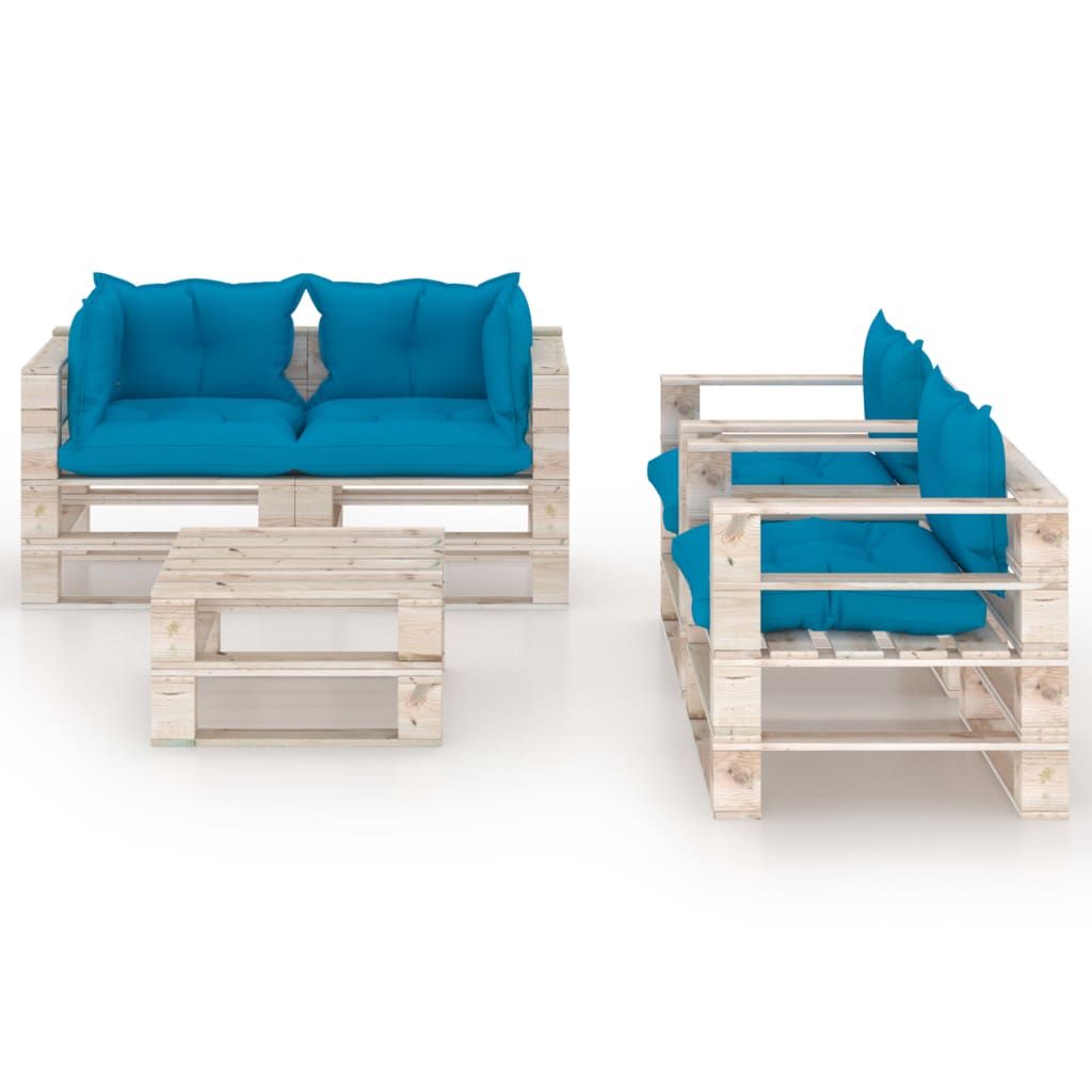 5-cz. zestaw mebli ogrodowych z palet, z poduszkami, sosna